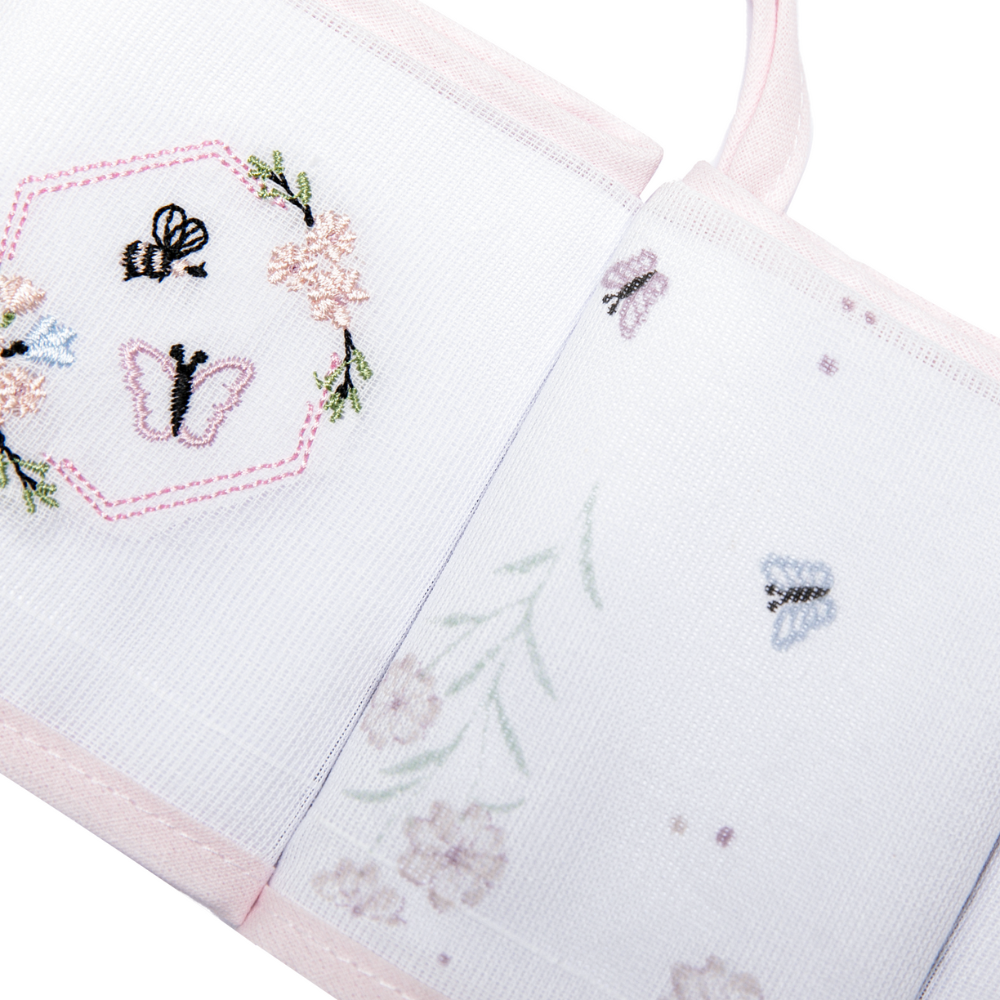Cada babete apresenta uma estampa delicada e vibrante de flores e elementos de jardim em tons de rosa e cores coordenadas, adicionando um toque de doçura e natureza. Este kit une funcionalidade, praticidade e um visual charmoso, tornando o momento da refeição mais alegre e a limpeza mais fácil para os pais.