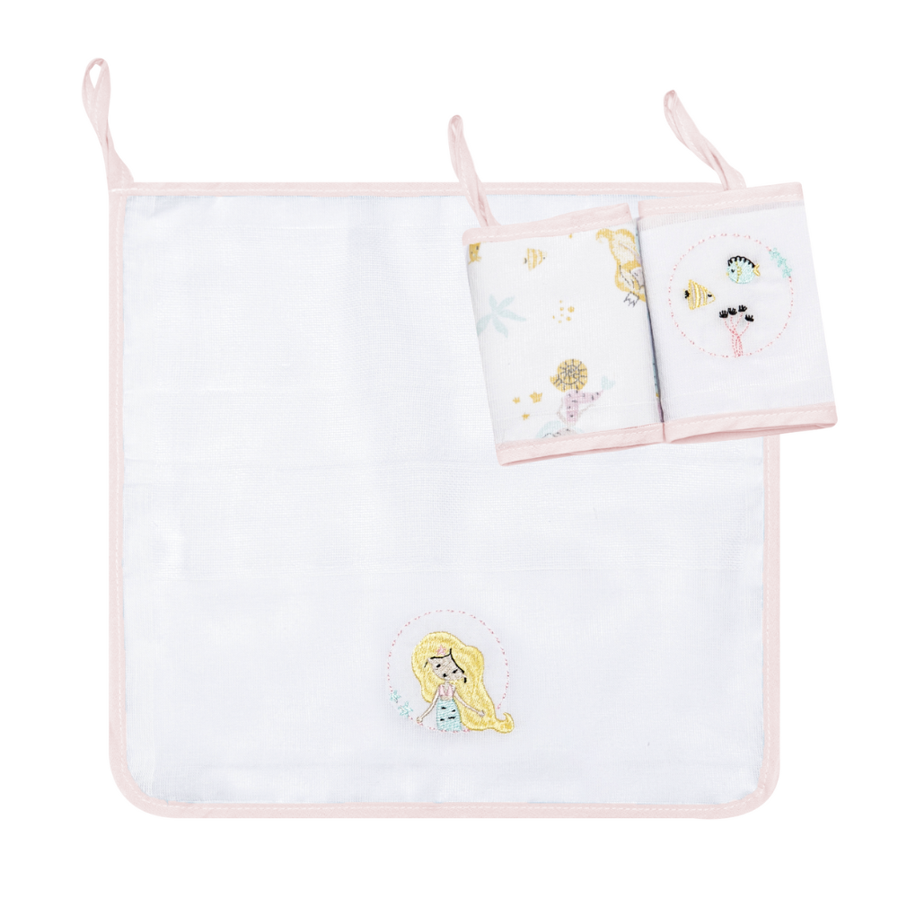 Cada babete apresenta uma estampa encantadora de sereias e elementos marinhos em tons de rosa e cores coordenadas, adicionando um toque de fantasia e doçura. Este kit une funcionalidade, praticidade e um visual charmoso, tornando o momento da refeição mais alegre e a limpeza mais fácil para os pais.