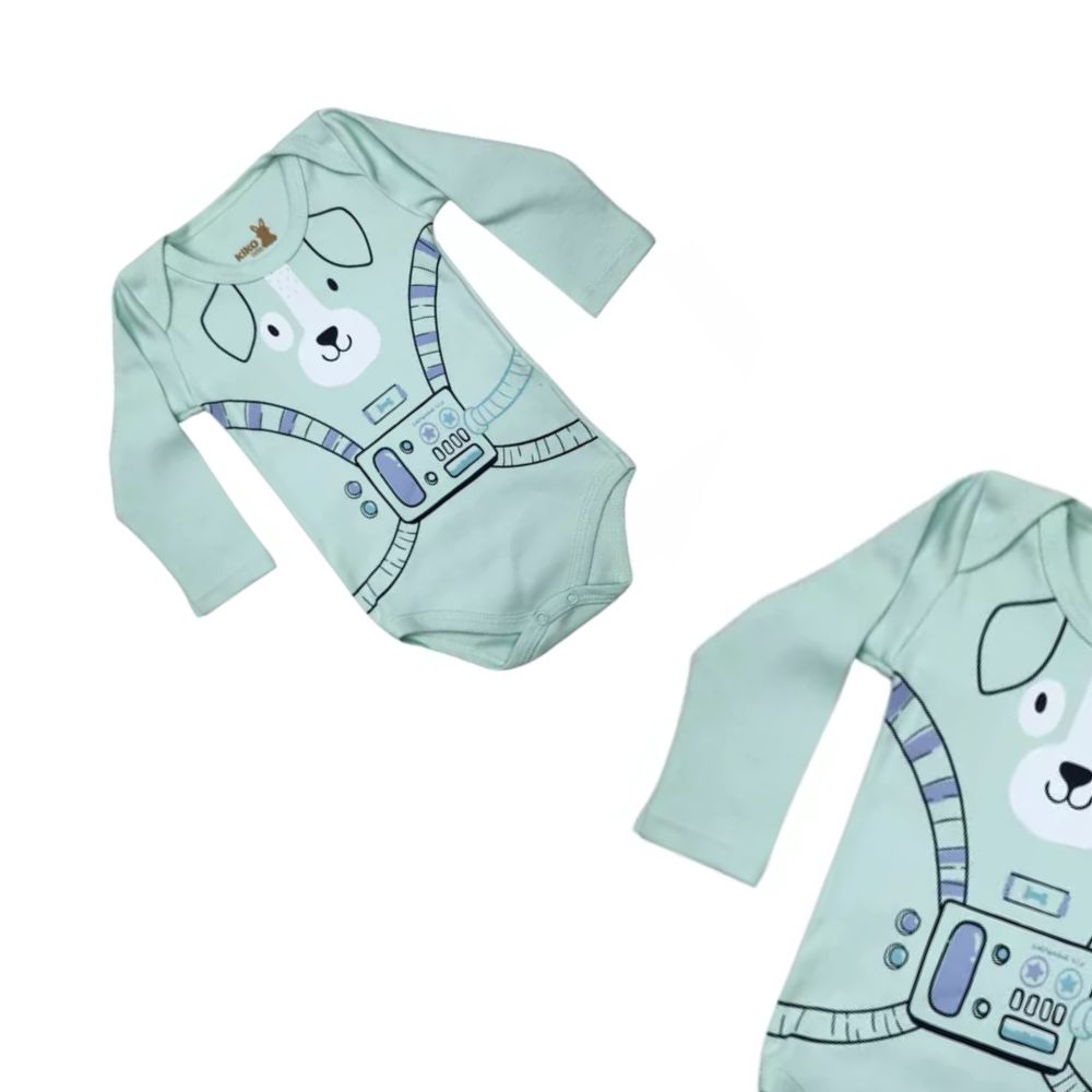 Deixe o seu bebê ainda mais fofo e confortável com o Body Kiko Kika Longo verde cachorro. Este adorável body é perfeito para manter o seu pequeno(a) confortável durante todo o dia, enquanto adiciona um toque de diversão ao seu visual.