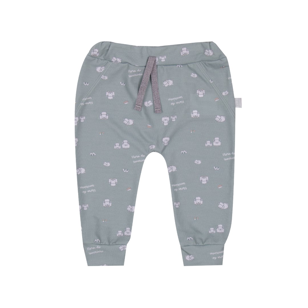 Calça Avulsa em Malha Polifiado Estampado com Cós de Elástico e Dealhe Cordão – 1 Peça