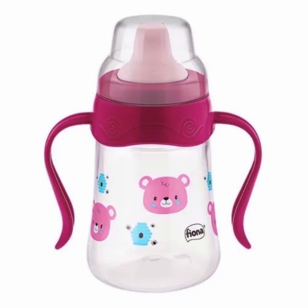 A caneca aprendizado Fiona possui bebedor em material macio para auxiliar a criança a ingerir líquidos sozinha.