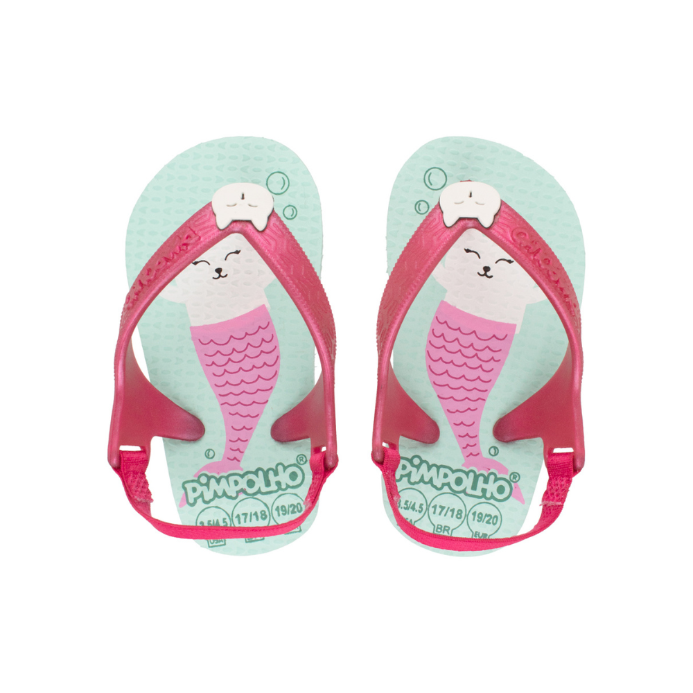 O chinelo Pimpolho possui solado estampado e com alta absorção de impacto e umidade, é flexível e o solado é produzido em borracha natural, que o torna leve e duradouro.