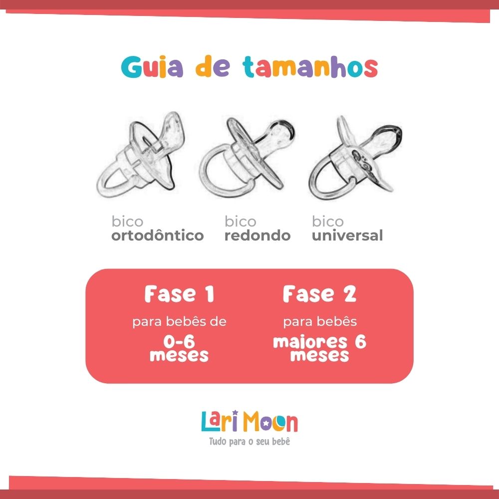 *GUIA DE TAMANHOS* CHUPETA FASE 1 (F1) – PARA CRIANÇAS DE 0 À 6 MESES / CHUPETA FASE 2 (F2) – PARA CRIANÇAS MAIORES DE 6 MESES