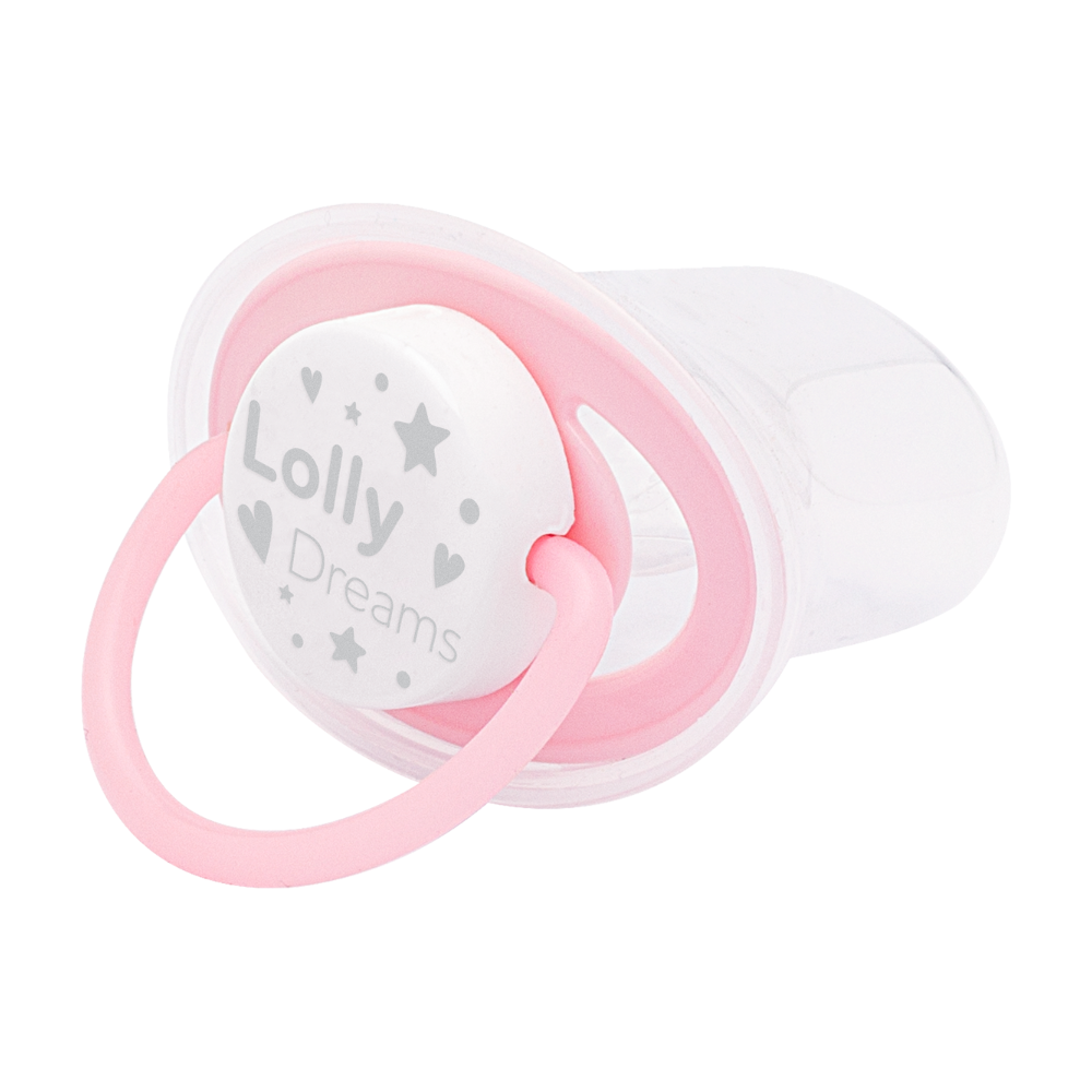 Chupeta Lolly Kinddy na cor rosa, com o suave design Dreams. O bico ortodôntico de silicone é ideal para promover o desenvolvimento oral correto. Escudo ventilado para o conforto da pele do bebê e material 100% Livre de BPA. A escolha perfeita para acalentar e cuidar da sua princesa.