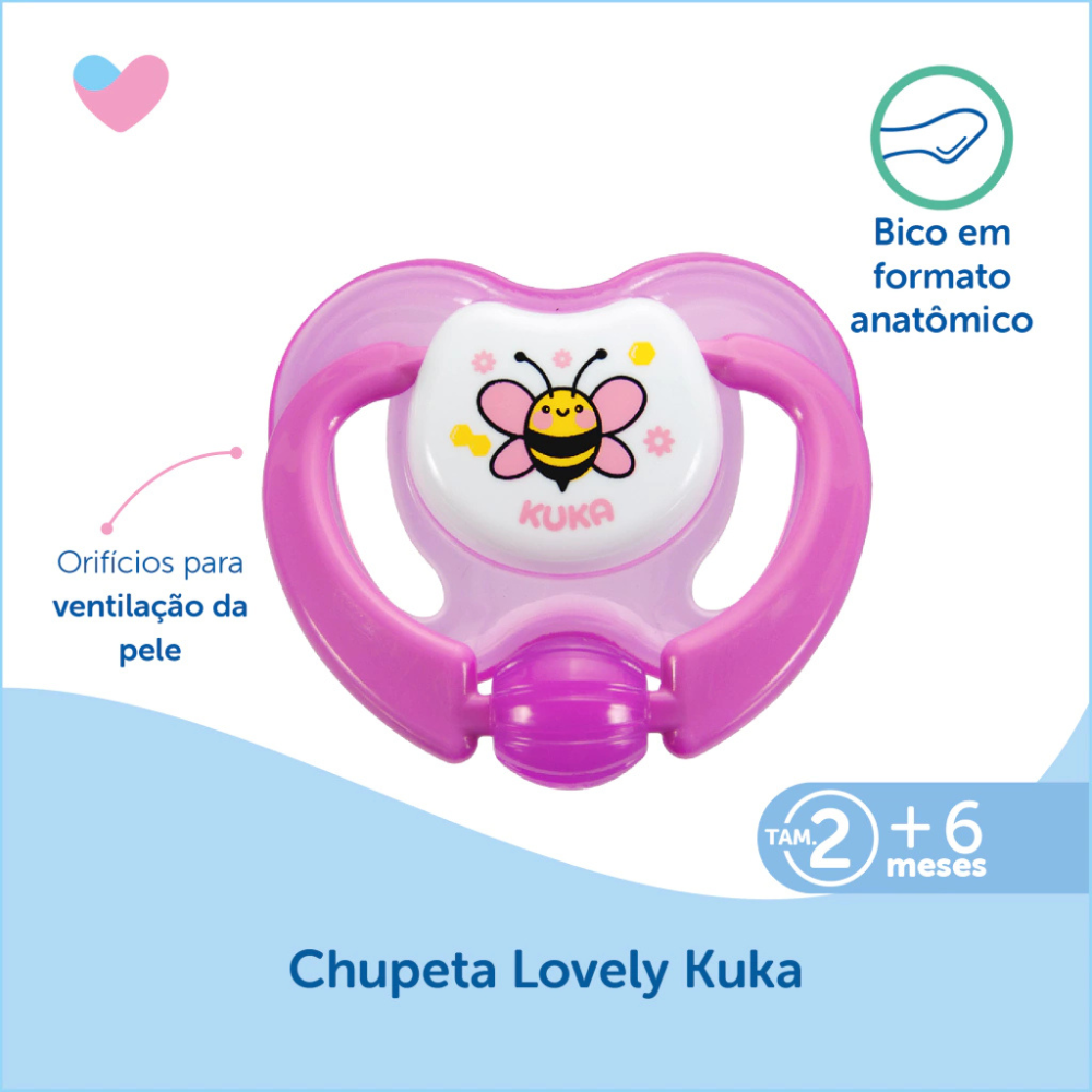 A Chupeta Lovely Kuka na cor Rosa com estampa de Abelha é a escolha perfeita para quem busca o equilíbrio entre design delicado e cuidado com o desenvolvimento bucal. Este modelo foi desenvolvido para proporcionar conforto ao bebê, apresentando um escudo com formato côncavo que se ajusta suavemente ao rosto.