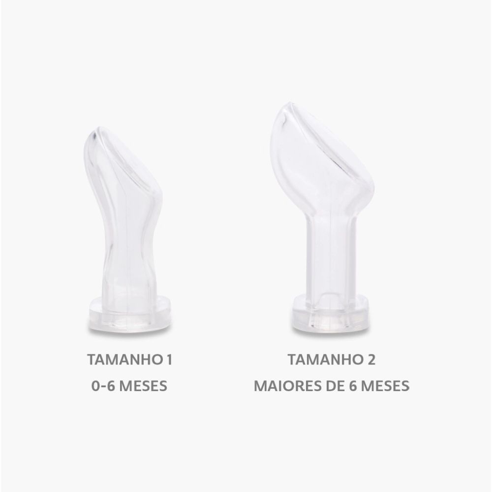 Tamanho 2 (Maiores de 6 meses): Dimensões do bico e do escudo proporcionais à face e à cavidade bucal de bebês em fase de maior desenvolvimento.
