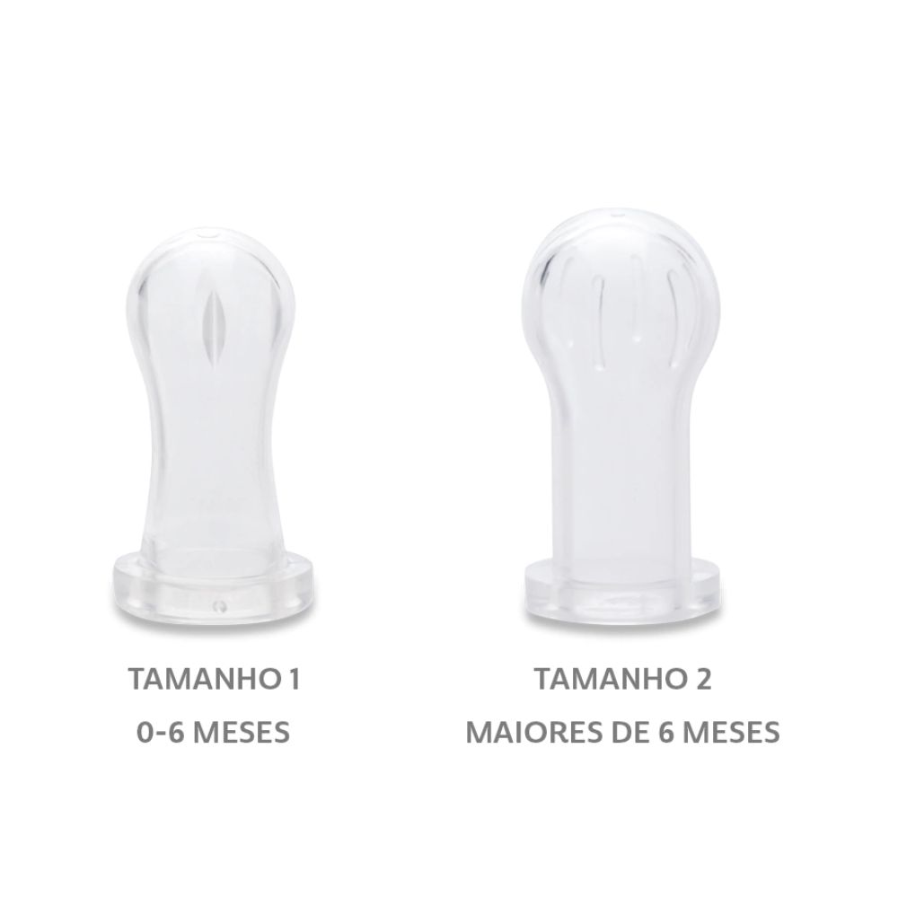 Seu modelo possui bico ortodôntico, auxiliando no desenvolvimento correto da cavidade bucal, além de possuir 02 entradas de ar para um fluxo de ar adicional, evitando a irritação da pele.