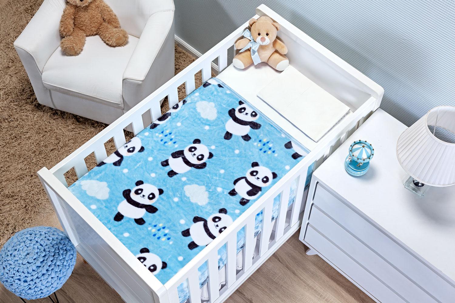 Muito prático que pode ser usado como manta para a mãe levar para qualquer lugar, além de super macio, ele também é antialérgico, feito em 100% poliéster, e com sua medida de 110cm x 90cm, tem um toque de seda