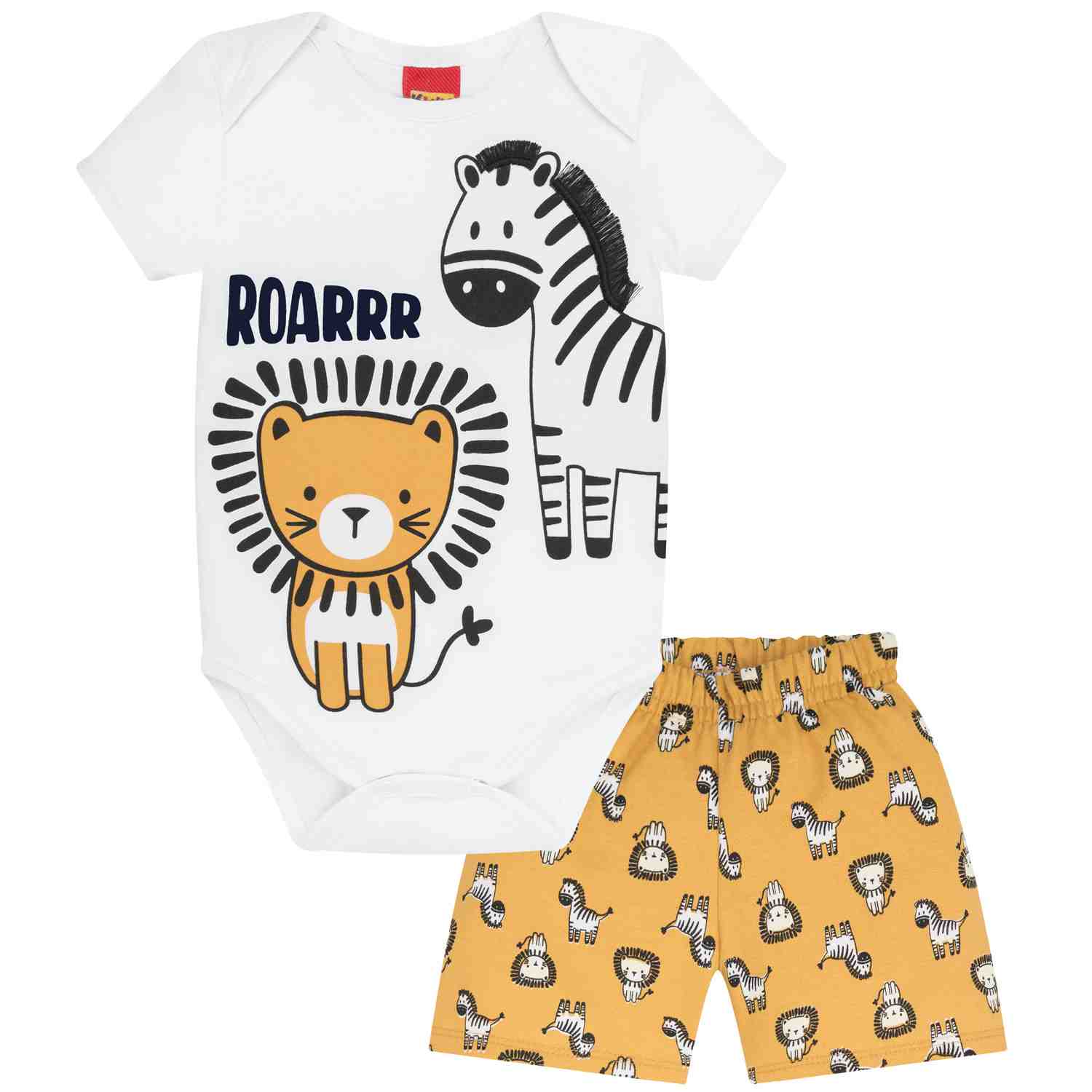 A Bermuda Bebê Masculina Kyly possui estampa combinando com o Body e elástico confortável no cós.