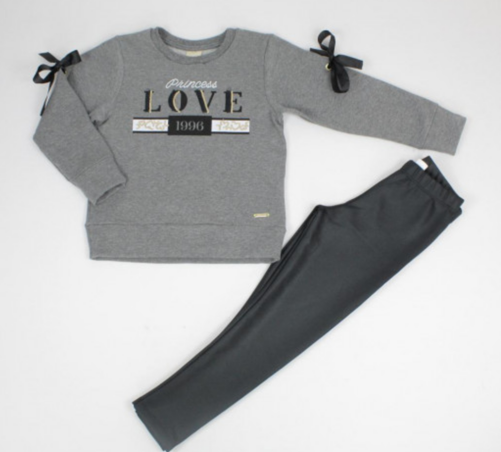 A camisa possui dois laços nos ombros da camisa e uma estampa escrita “Princess Love” cheia de charme.