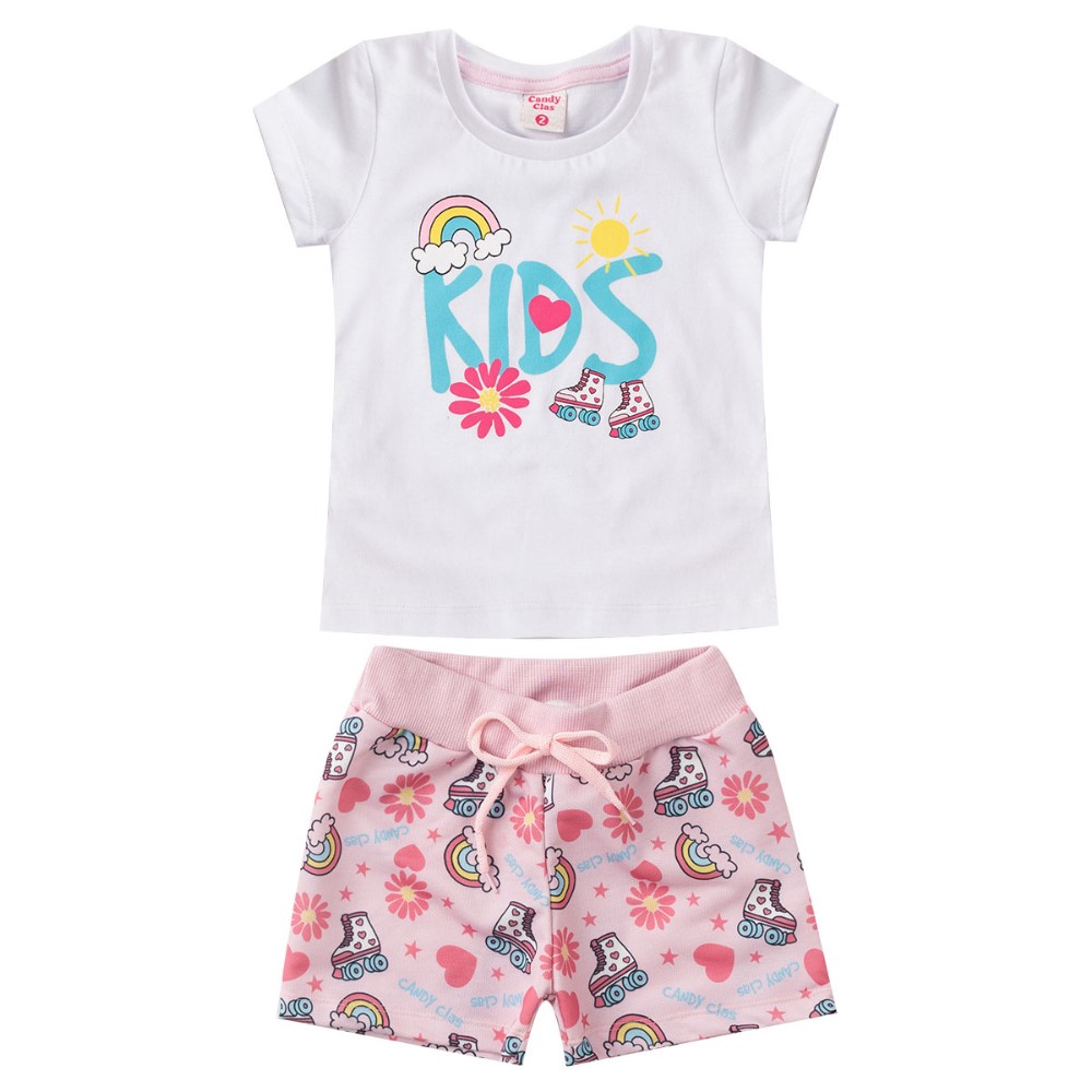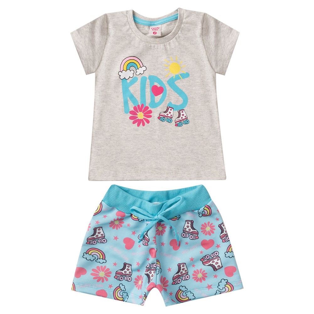 Camiseta infantil estampada confeccionada em malha e algodão, decote redondo e manga curta e estampa com strass.