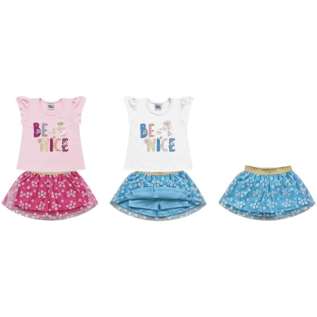 Conjunto Manga Curta Kiko&Kika Feminino Flor “Be Nice” 09629