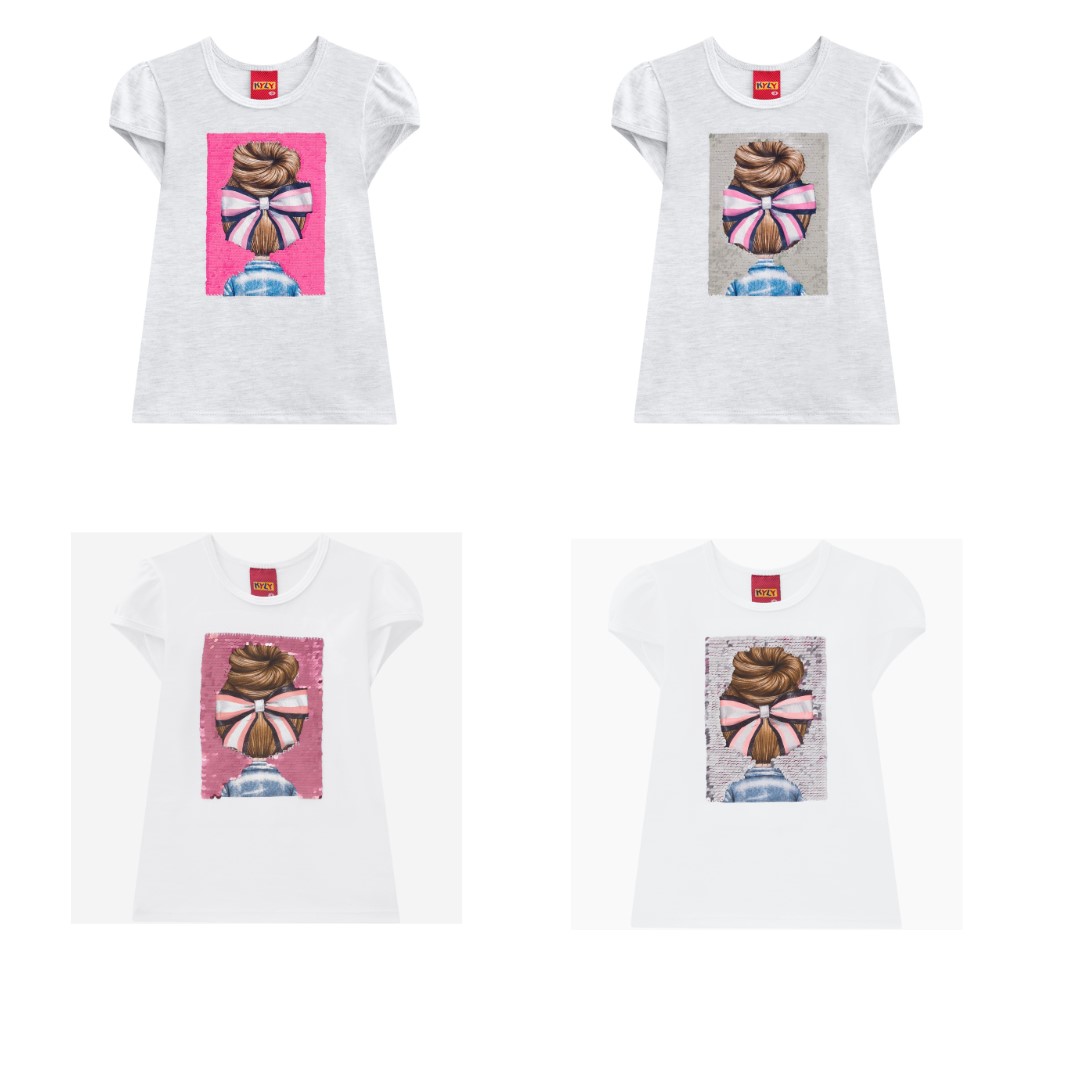 A Camiseta Infantil Feminino Kyly possui modelagem tradicional e estampa frontal.