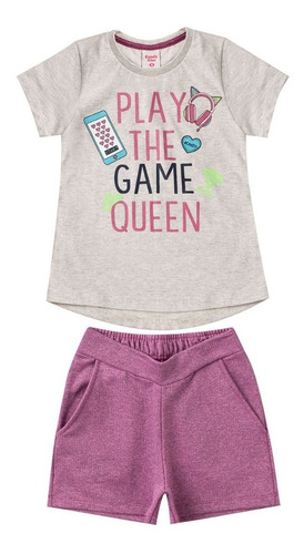 Conjunto Infantil Feminino Kyly é composto por Camiseta em Meia Malha e Bermuda em Moletom sem felpa.