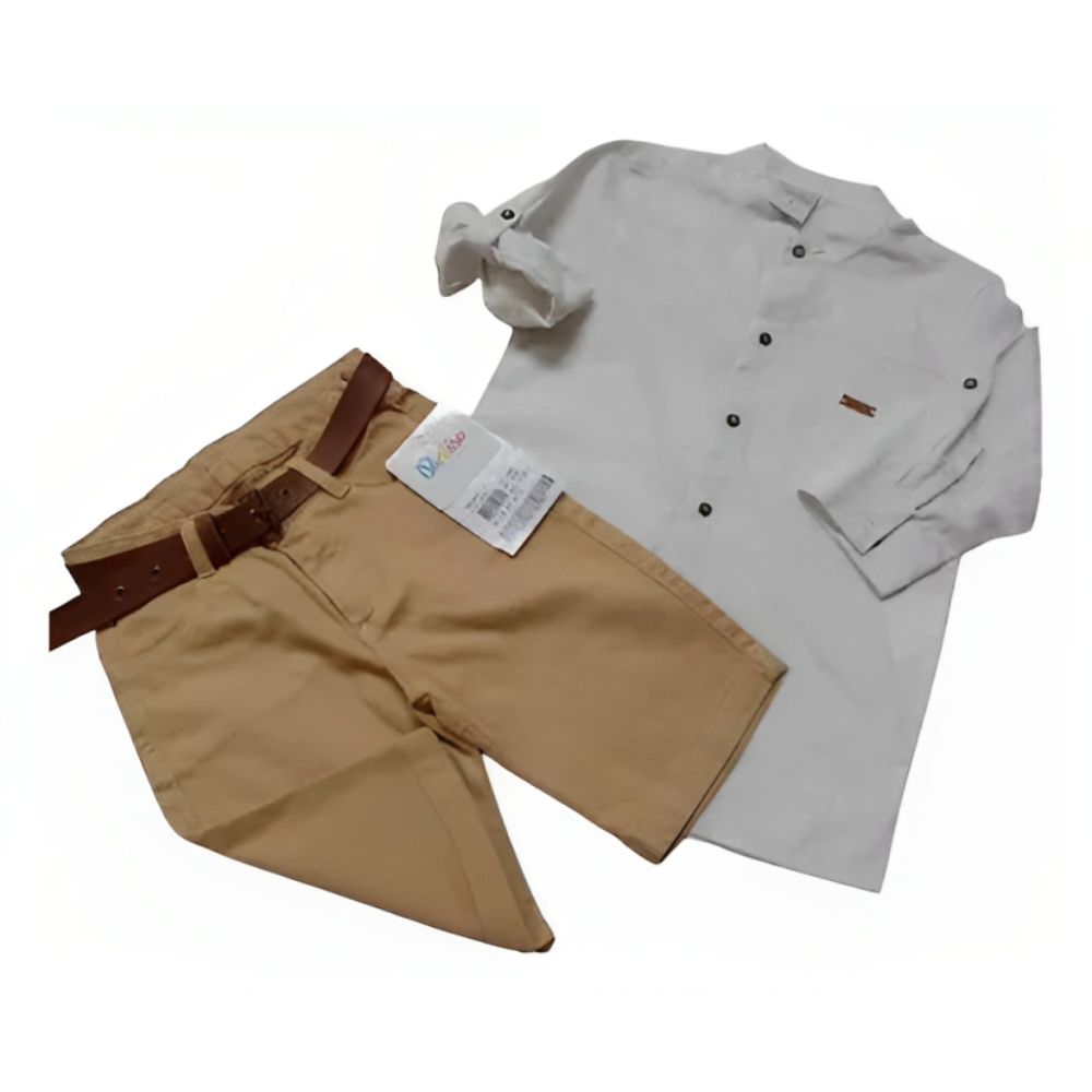 Conjunto Manga Curta Paraiso Masculino Mostarda/Off White 14110