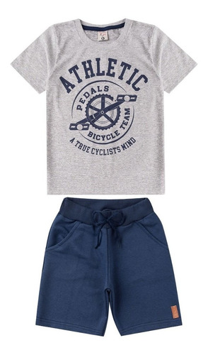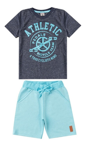 Conjunto infantil composto por uma camiseta e um shorts.