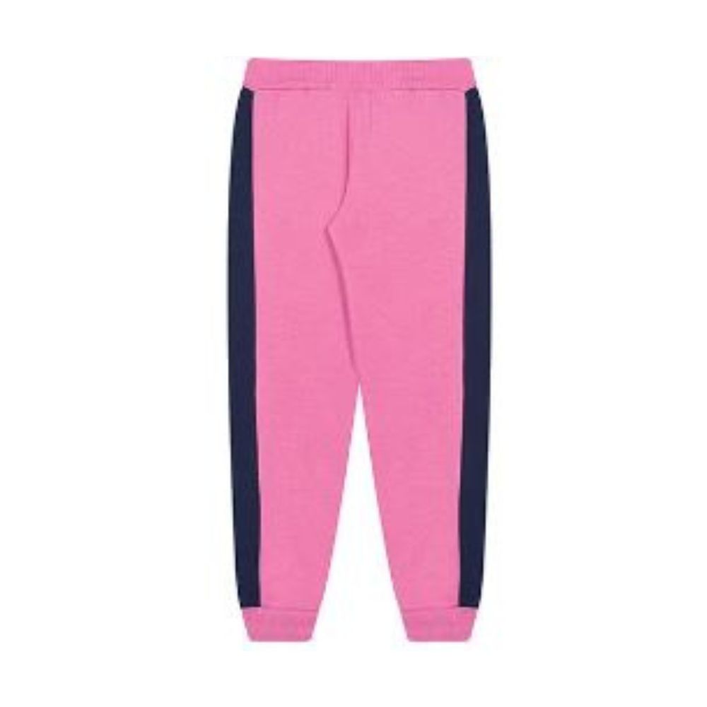 A calça, também feita com tecido de moletom, possui ribana no cós e nos punhos, além de ser peluciada na parte interna para garantir conforto máximo. Com recortes de outra cor nas laterais das pernas, a calça adiciona um toque de estilo e proporciona liberdade de movimento durante as brincadeiras.