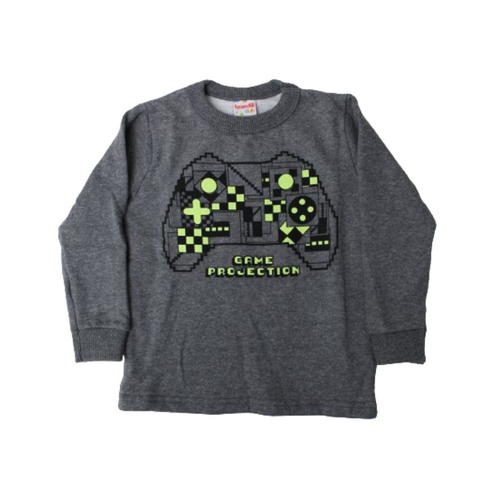 Apresentamos o charmoso Conjunto da marca Brandili, perfeito para os pequenos gamers de plantão. Este conjunto é composto por uma blusa de moletom na cor mescla, adornada com uma estampa divertida de um controle de video game e a frase “Game Projection”, traduzida como “Projeção Gamer”, adicionando um toque de estilo e diversão ao visual.