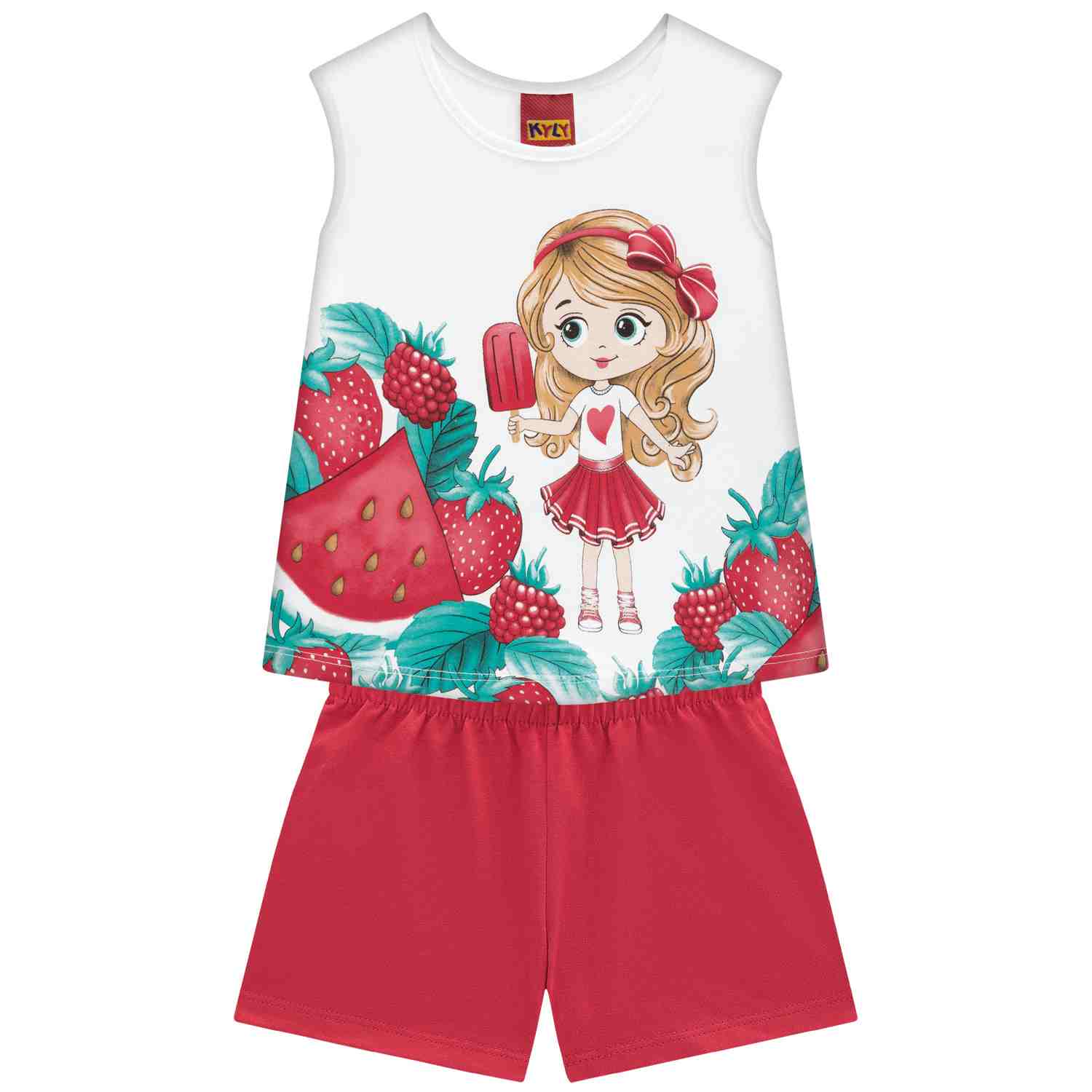 Conjunto Infantil Feminino Kyly é composto por Camiseta em Meia Malha e Bermuda em Moletom sem felpa.