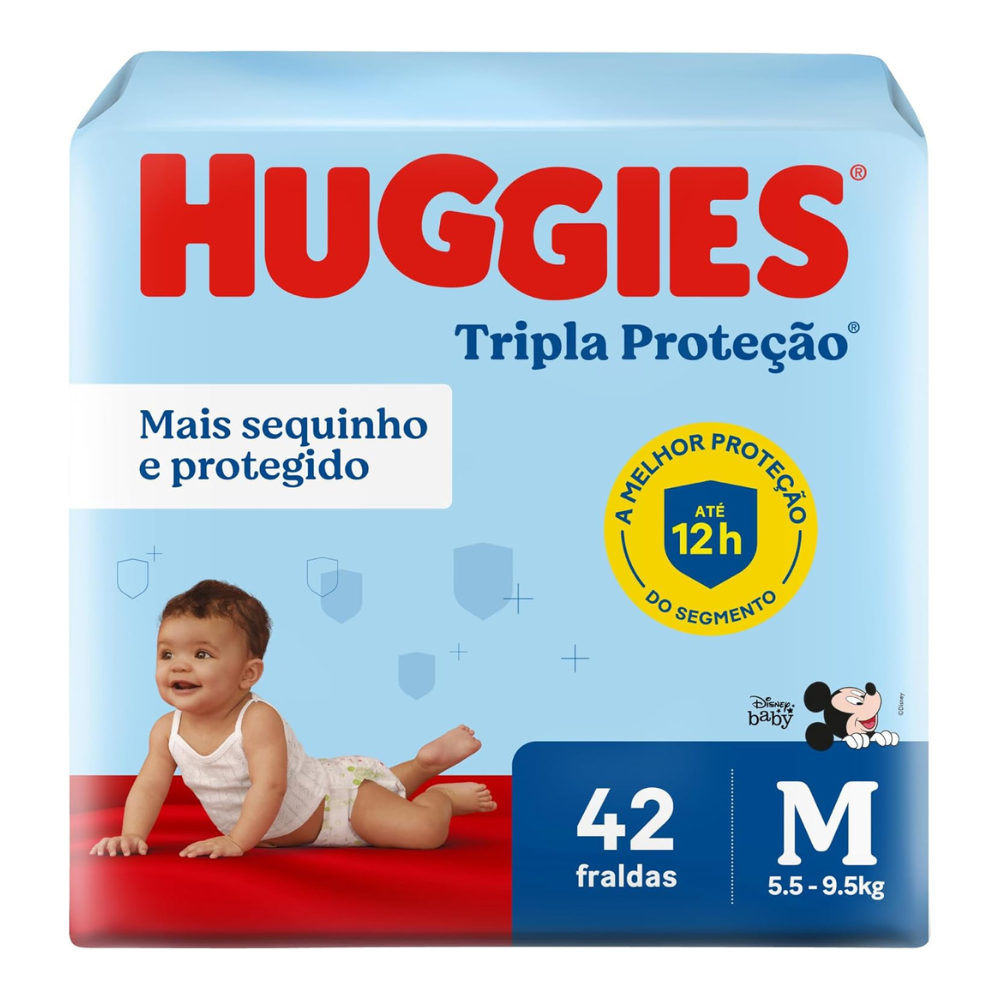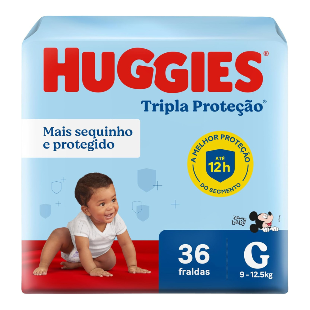 As fraldas Huggies Tripla Proteção Disney Baby são ideais para manter o conforto e a proteção do seu bebê! Elas são desenvolvidas com a exclusiva tecnologia Xtra-Protect, que proporciona maior absorção e sistema anti-vazamento com canais em forma de X que não deixam acumular resíduos em um único lugar, fornecendo tripla proteção e mantendo o seu bebê ainda mais confortável e seco por toda a noite!