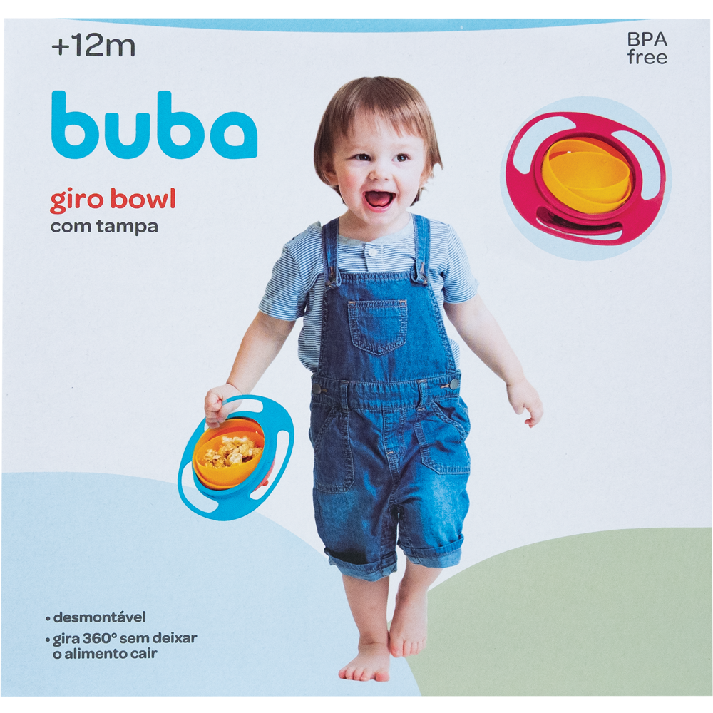 O Giro Bowl com Tampa Buba foi desenvolvido para tornar a alimentação das crianças mais prática e divertida. Seu sistema interno giratório 360° mantém o recipiente sempre na posição correta, ajudando a evitar que os alimentos caiam mesmo quando o bowl é inclinado ou movimentado.
