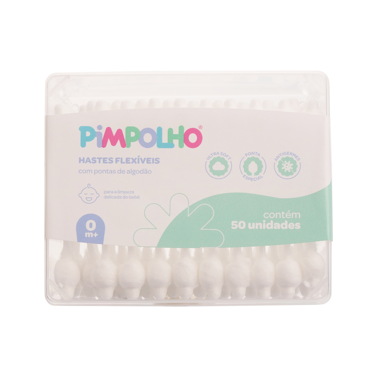 Hastes Flexíveis Pimpolho +0m com 50 Unidades – Higiene e Segurança para o Bebê