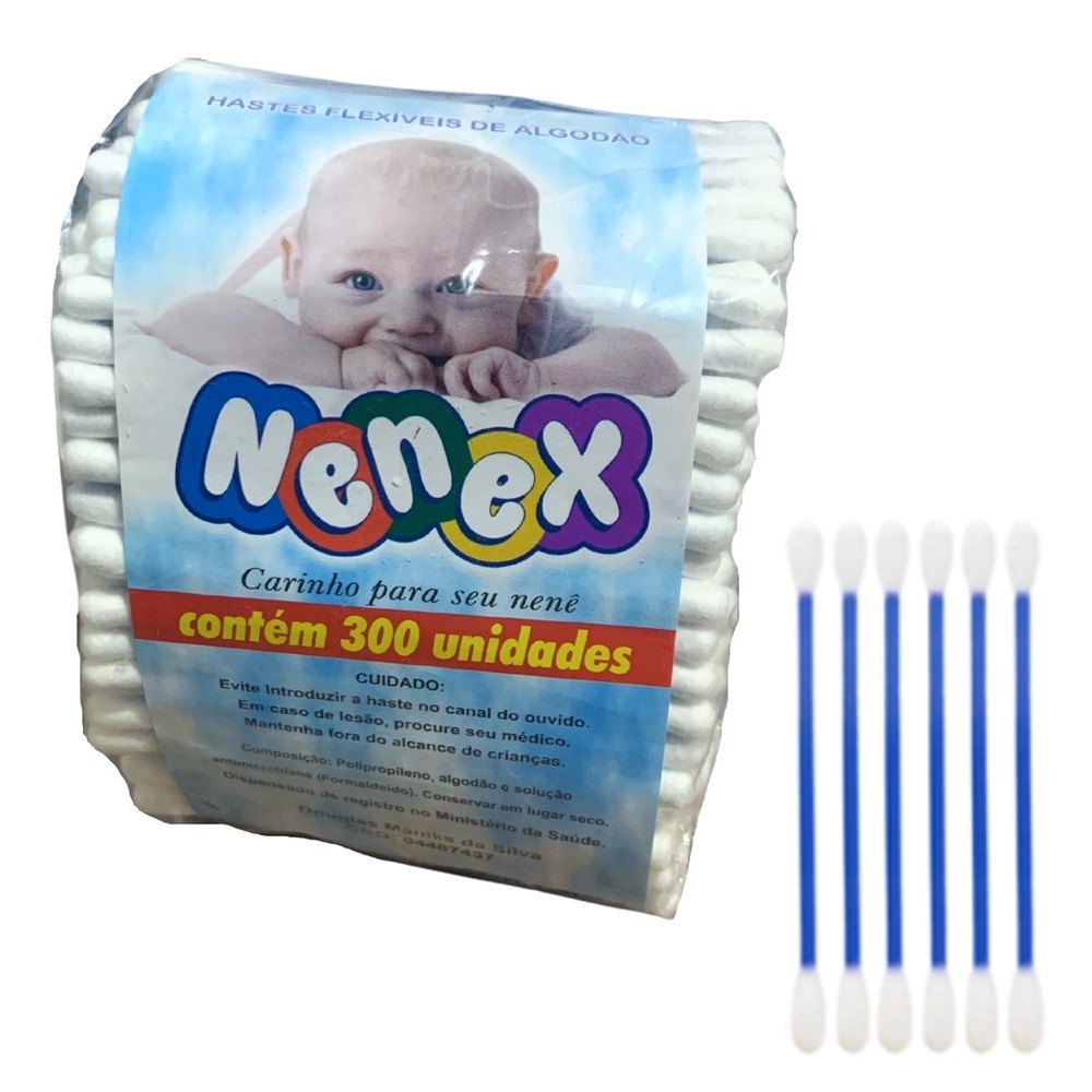 Hastes Flexível Nenex 300Un Bebê Algodão Refil