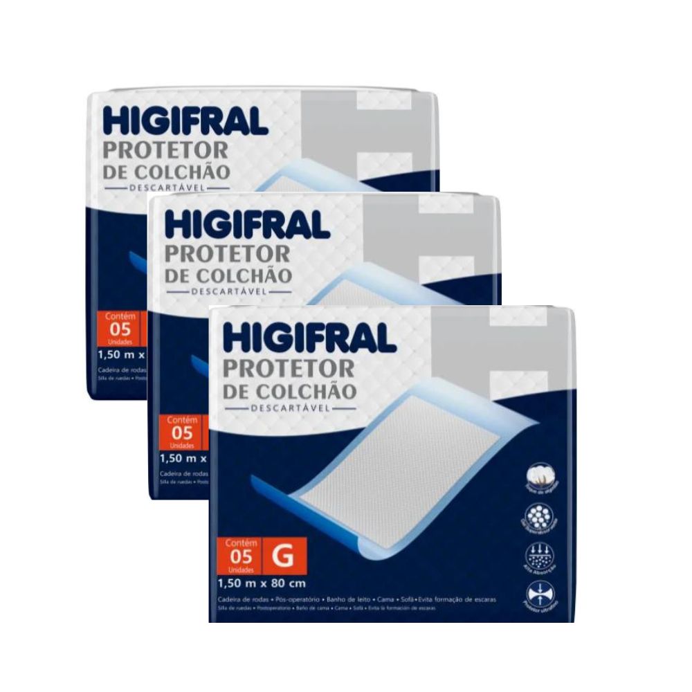 Kit 3 Pacotes Protetor De Colchão Higifral Descartável G C/5 Unidades