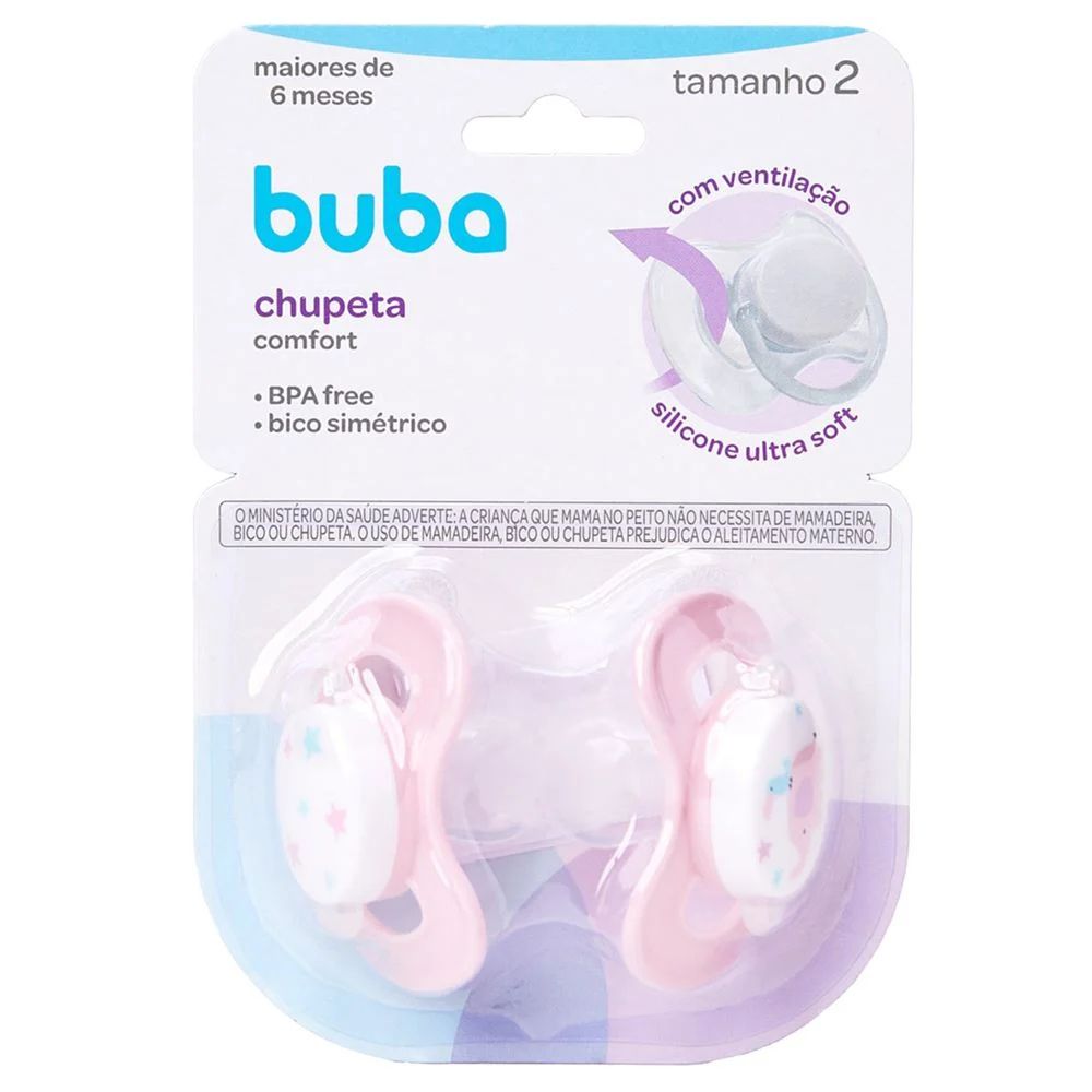 Indicado para bebês a partir dos 6 meses, as chupetas possuem bico simétrico em silicone macio e de alta qualidade, que se adapta de forma natural à boca, respeitando o desenvolvimento correto do palato e da dentição. O escudo conta com furos de ventilação que permitem a circulação de ar, evitando irritações na pele sensível do bebê. Além disso, os materiais são totalmente livres de BPA (BPA-free), garantindo um produto seguro e higiênico. Com a confiança da marca Buba, este kit é o acessório perfeito para acalmar e confortar sua pequena em todos os momentos do dia.