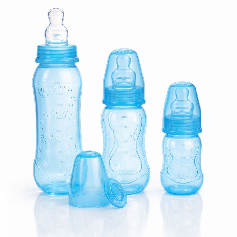 Kit com 3 Mamadeiras Kuka Bico Ortodôntico Azul Liso – 3146 (70ml, 160ml e 250ml)