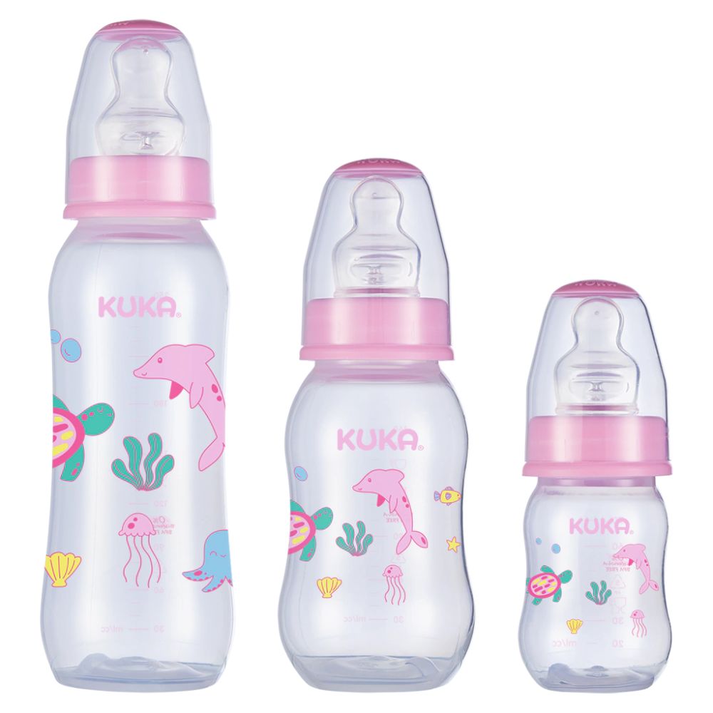 Kit com 3 Mamadeiras Kuka Bico Ortodôntico Rosa – 70ml, 160ml e 250ml
