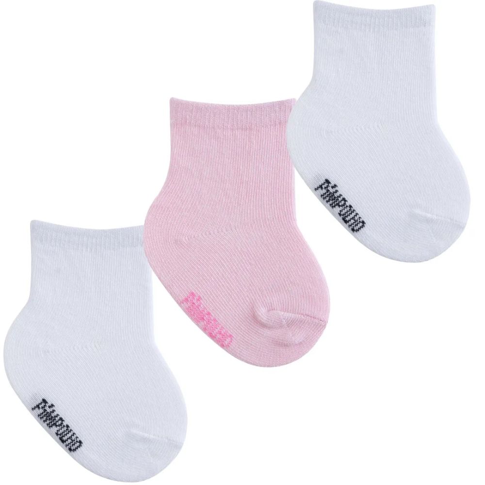 Kit Meia C/3 Pimpolho Cano Alto Feminino 00 A 15 Liso Rosa/Branco 8799