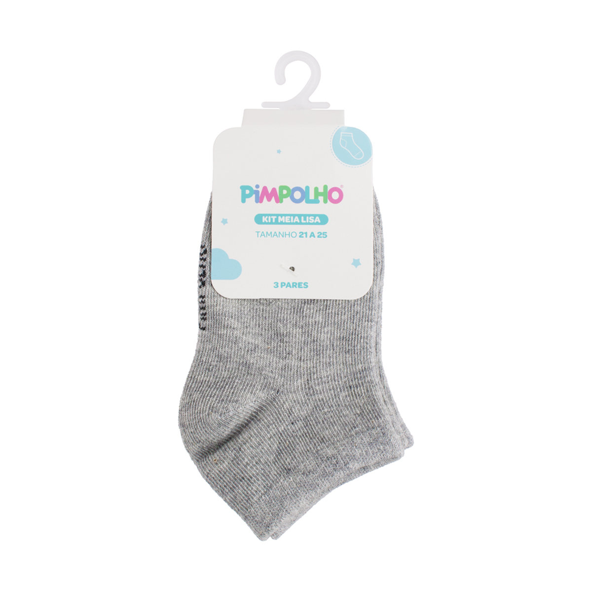 O Kit Meia Pimpolho Neutro Cinza é o item básico e essencial que não pode faltar no guarda-roupa dos pequenos. Com um design clean e uma paleta de cores neutras em tons de cinza, este kit é extremamente versátil, combinando perfeitamente com qualquer tipo de calçado ou roupa, do estilo casual ao esportivo.