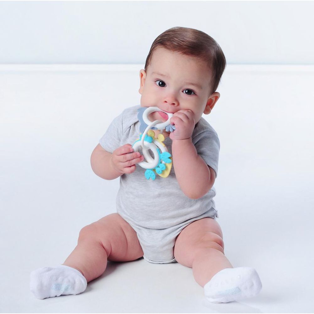 O kit Mordedor Bichinhos Marinhos 3peças da pimpolho possui tons suaves e formatos que garantem uma pegada confortável e segura. As diferentes texturas massageiam a gengiva e aliviam o desconforto da fase de dentição. Pode ser oferecido em kit ao bebê ou individualmente, se transfomando em 3 mordedores independentes.
