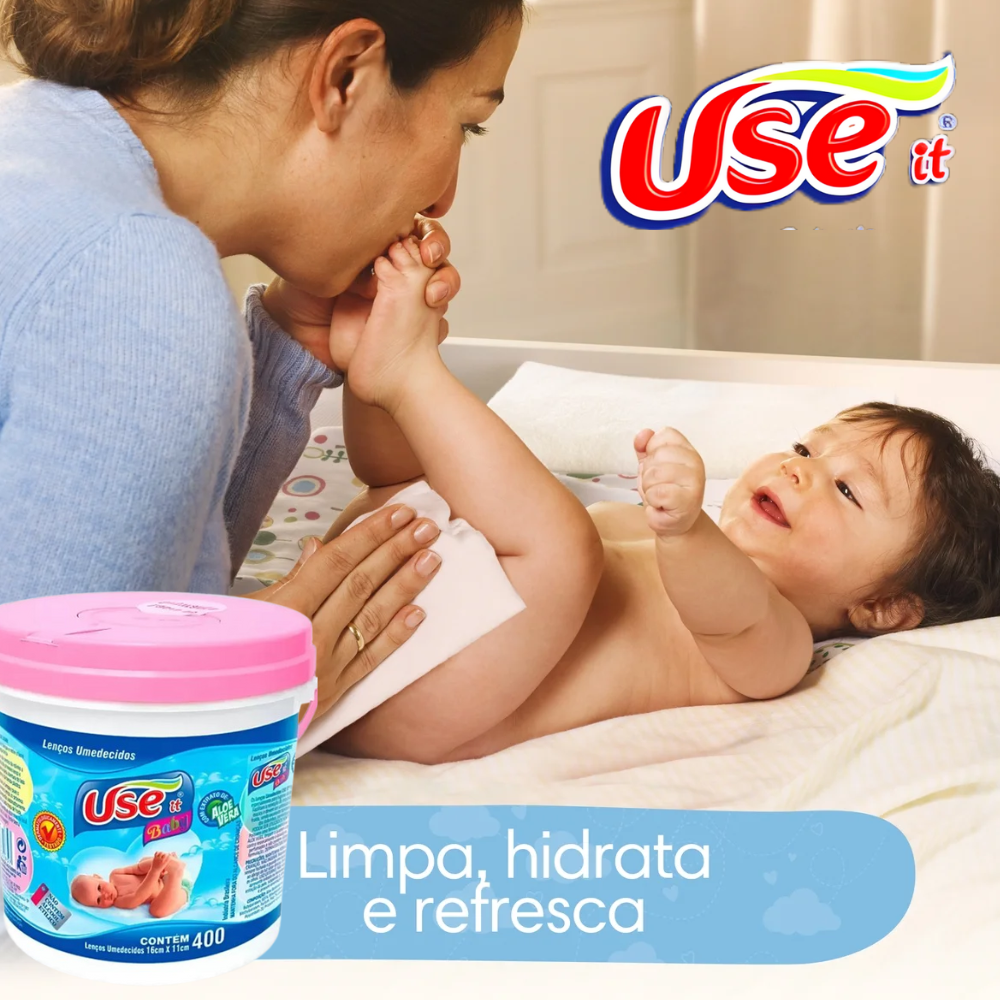Os Lenços Umedecidos USE IT foram elaborados especialmente para higiene da pele do seu bebê. Facilitam a remoção de impurezas.