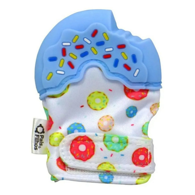 Luva de Dentição Com Mordedor da Pais & Filhos, ajuda o pequeno no momento de desconforto que é o da dentição.