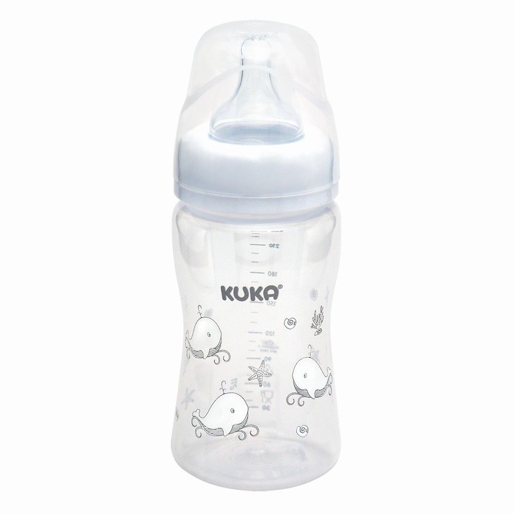 A Mamadeira Essential de 240ml da Kuka, possui frasco anatômico com gargalo ultra-higiênico sem bordas ou rebarbas cortantes e não retém resíduos alimentares. Produto livre de Bisfenol A (BPA)