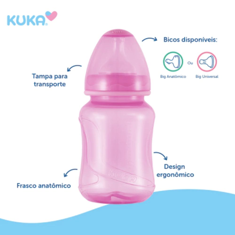 Mamadeira Kuka Aquarela Big Bico Redondo Rosa Liso 240ml