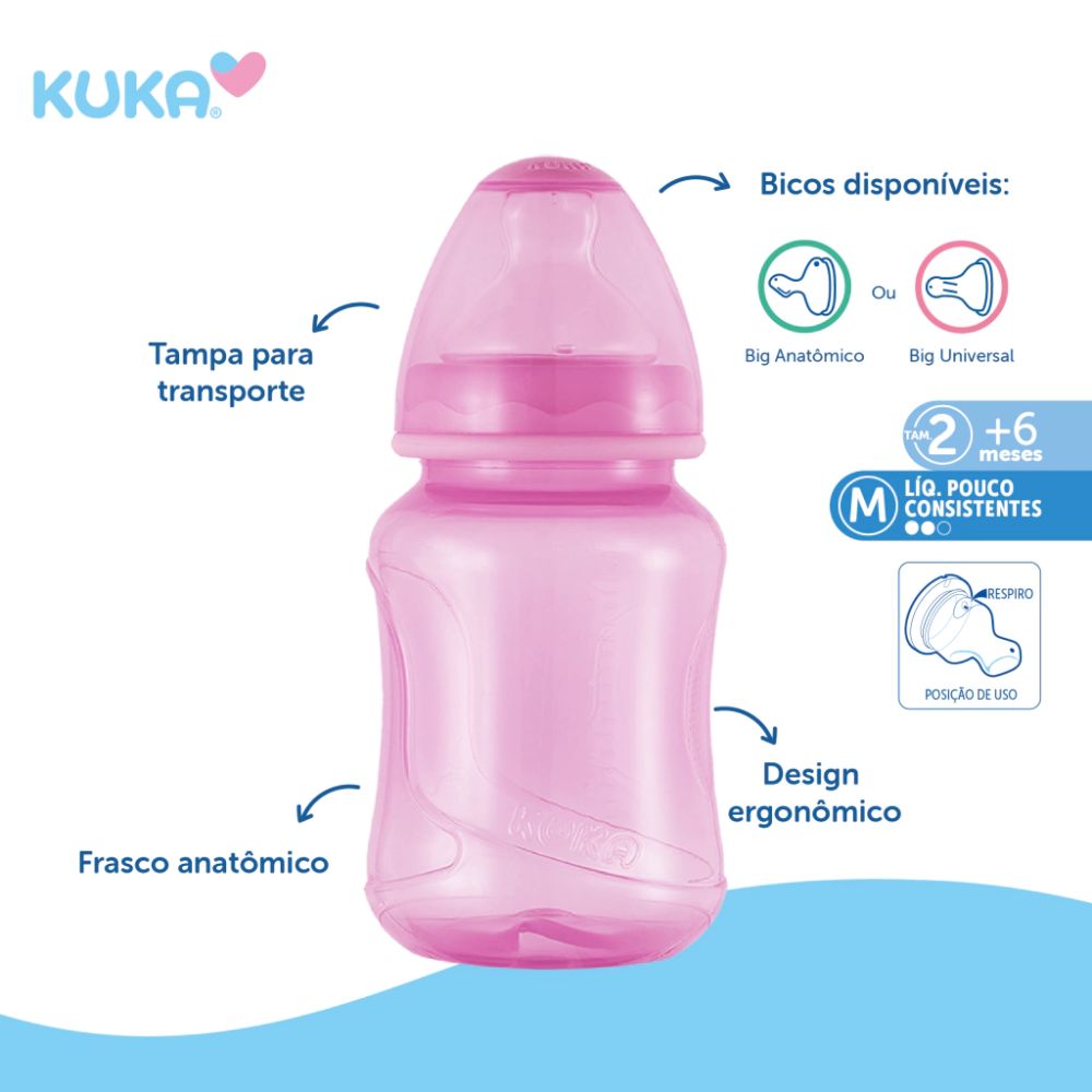 Mamadeira Big Kuka Ort 240ml 6m+ Aquarela Rosa 1452