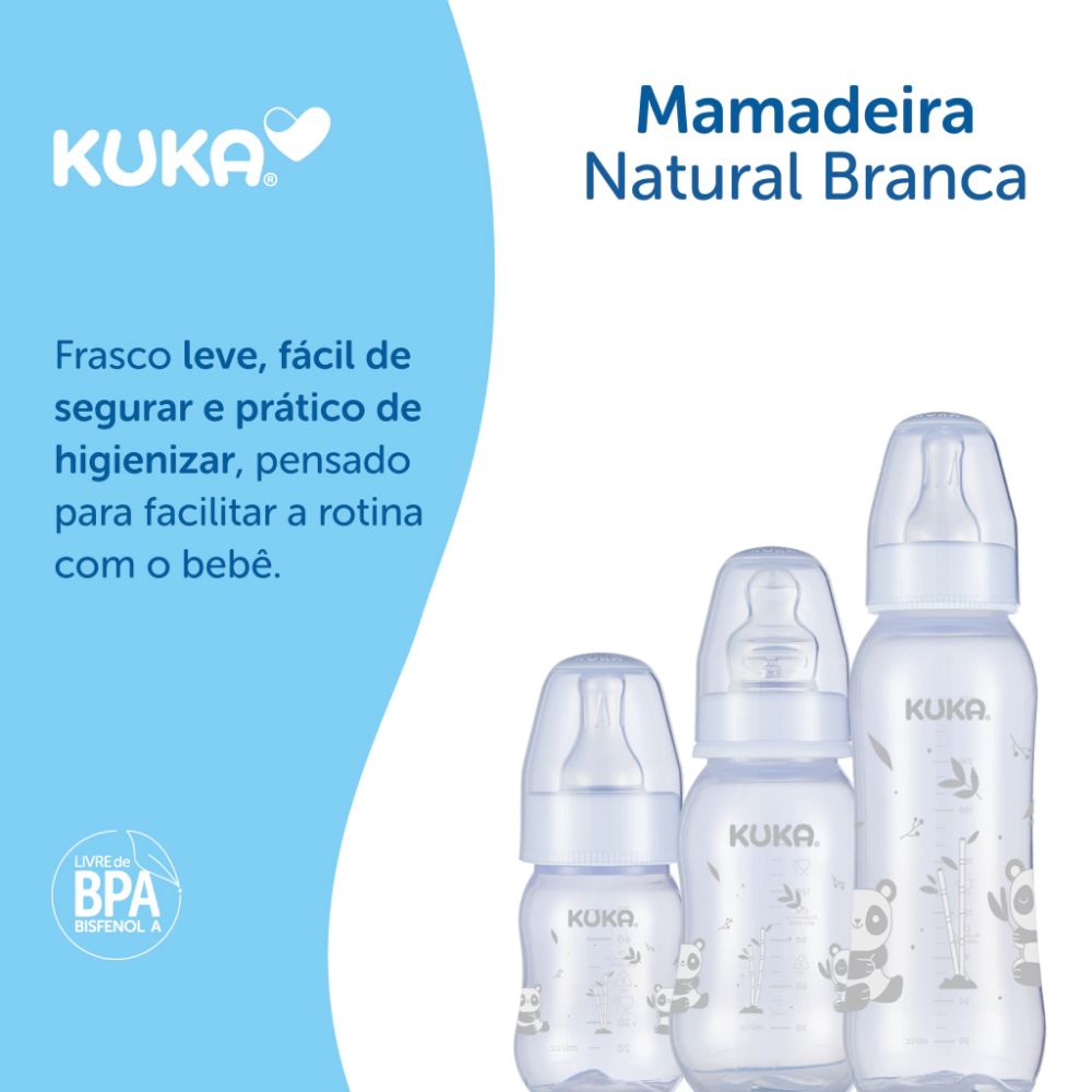 Mamadeira Kuka Natural Bico Ortodôntico 250ml Branco Tamanho 2 – Bico M para Líquidos Pouco Consistentes