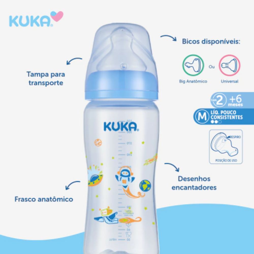 Mamadeira Kuka Essential Big Bico Ortodôntico Azul 330ml Tamanho 2