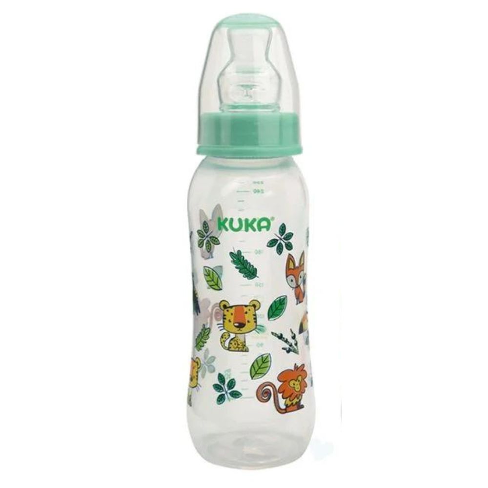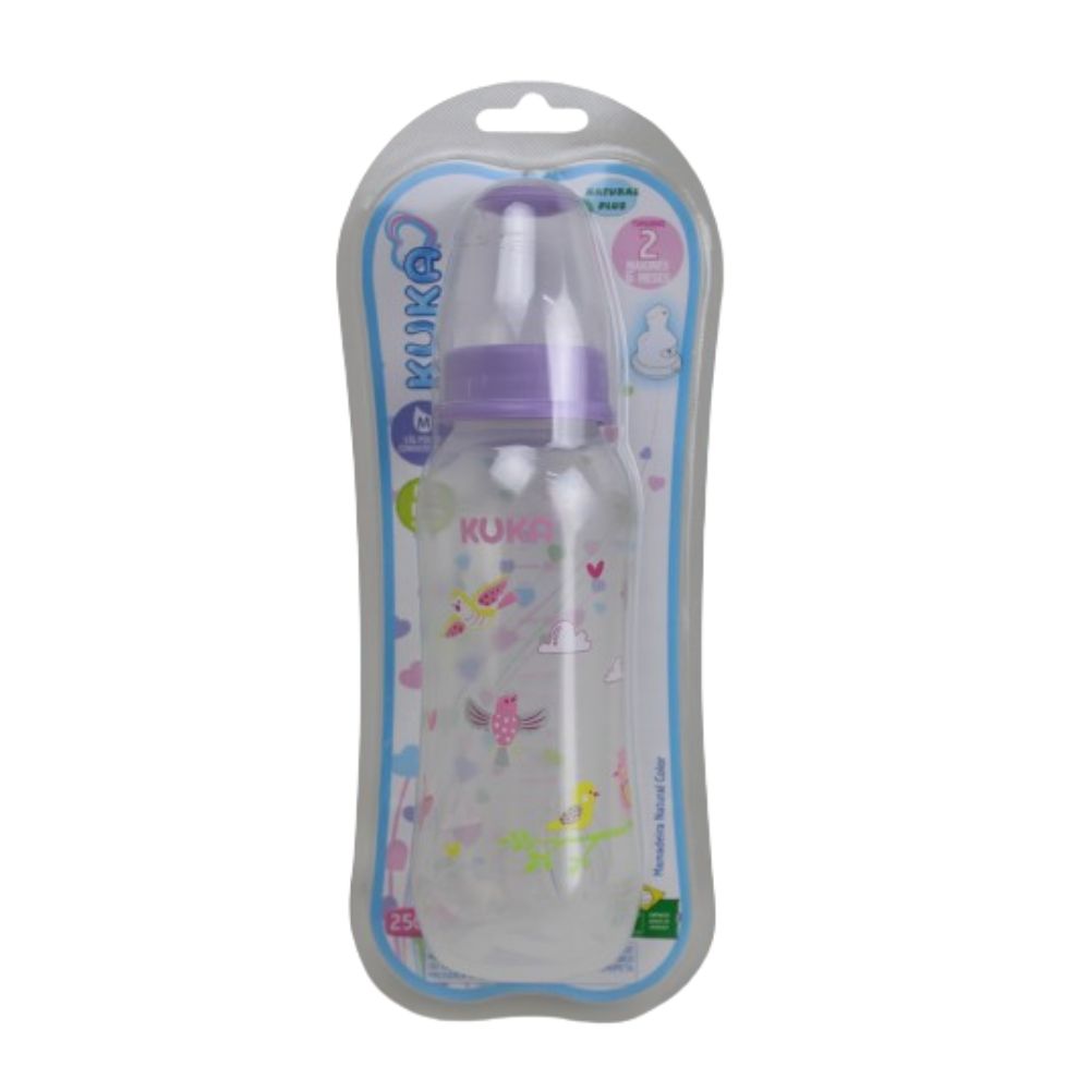 A Mamadeira Kuka de 250ml possui bico ort de silicone fase 2 para líquidos pouco consistente.