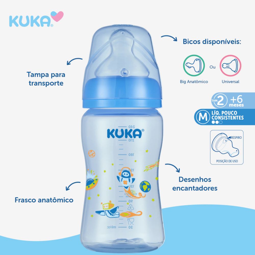 Mamadeira Kuka Essential Big Bico Ortodôntico Azul 240ml Tamanho 2
