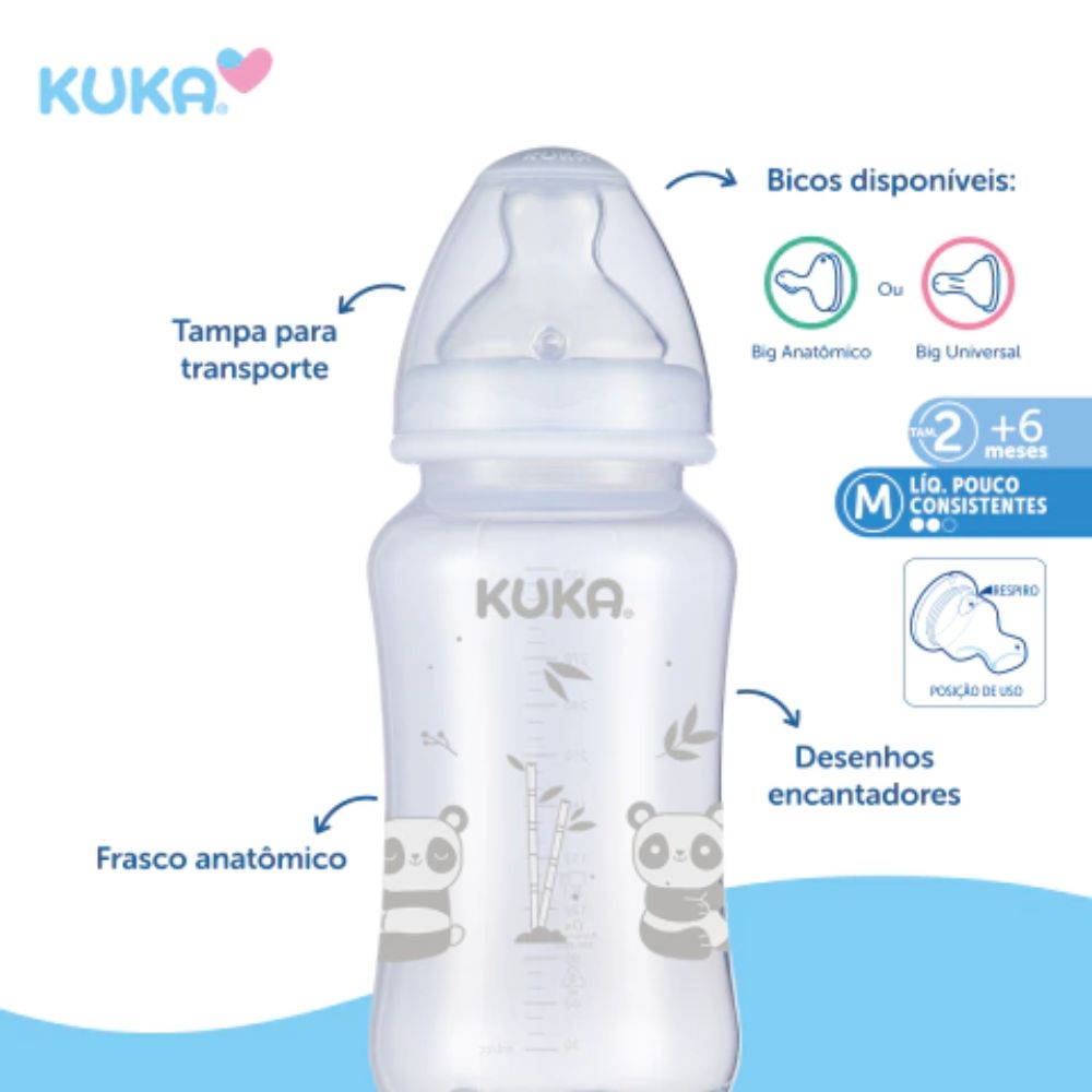 A Mamadeira Kuka Natural Big foi desenvolvida para oferecer conforto e praticidade durante a alimentação do bebê. Com bico ortodôntico tamanho 2, proporciona sucção anatômica, auxiliando no posicionamento correto da língua e tornando a mamada mais confortável.