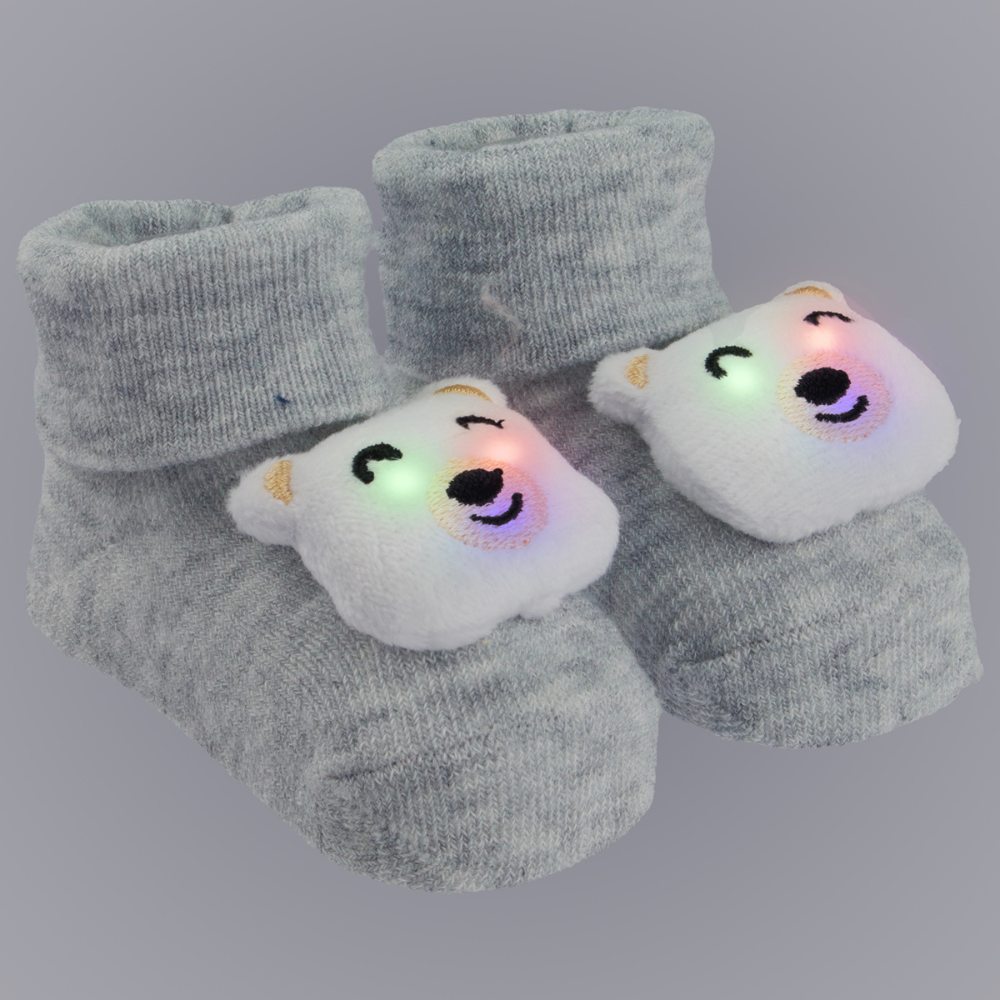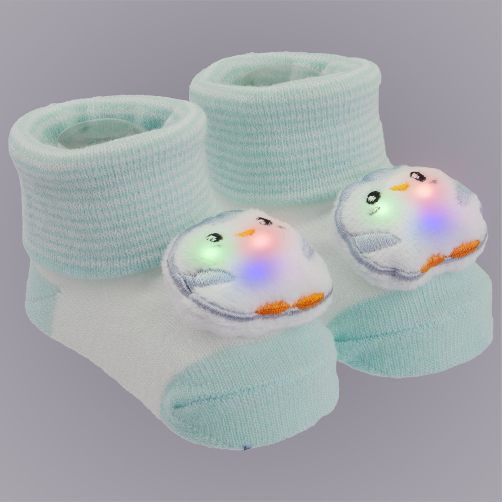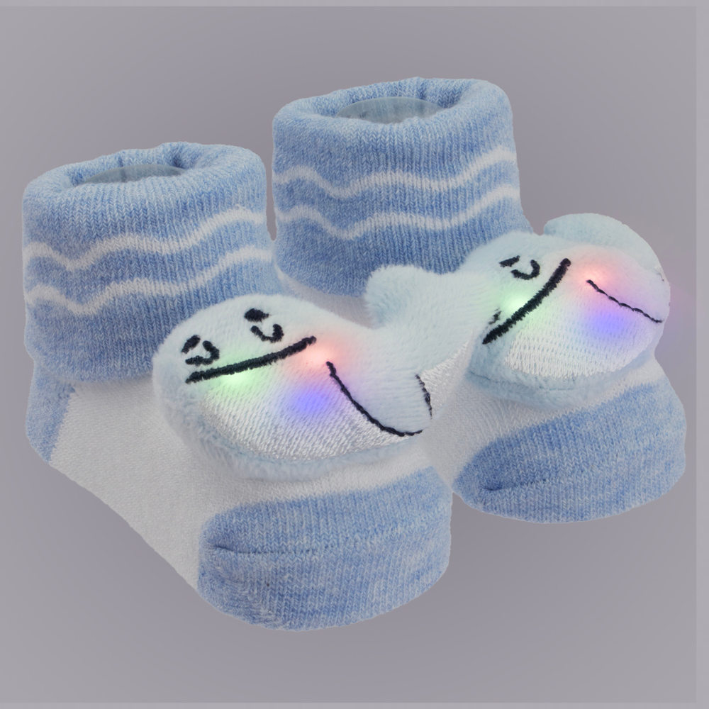 A meia bichinho led é macia e oferece o conforto ideal, vai proteger e manter os pezinhos do bebê sempre quentinhos. Ajuda o bebê no desenvolvimento da criatividade, imaginação, cognição e motricidade com suas luzes, cores e texturas. Durabilidade do led 100.000 ciclos. Para ativar a luz led é necessário um leve toque no bichinho. LEDs encapsulados resistentes à água. Pode ir à máquina de lavar.