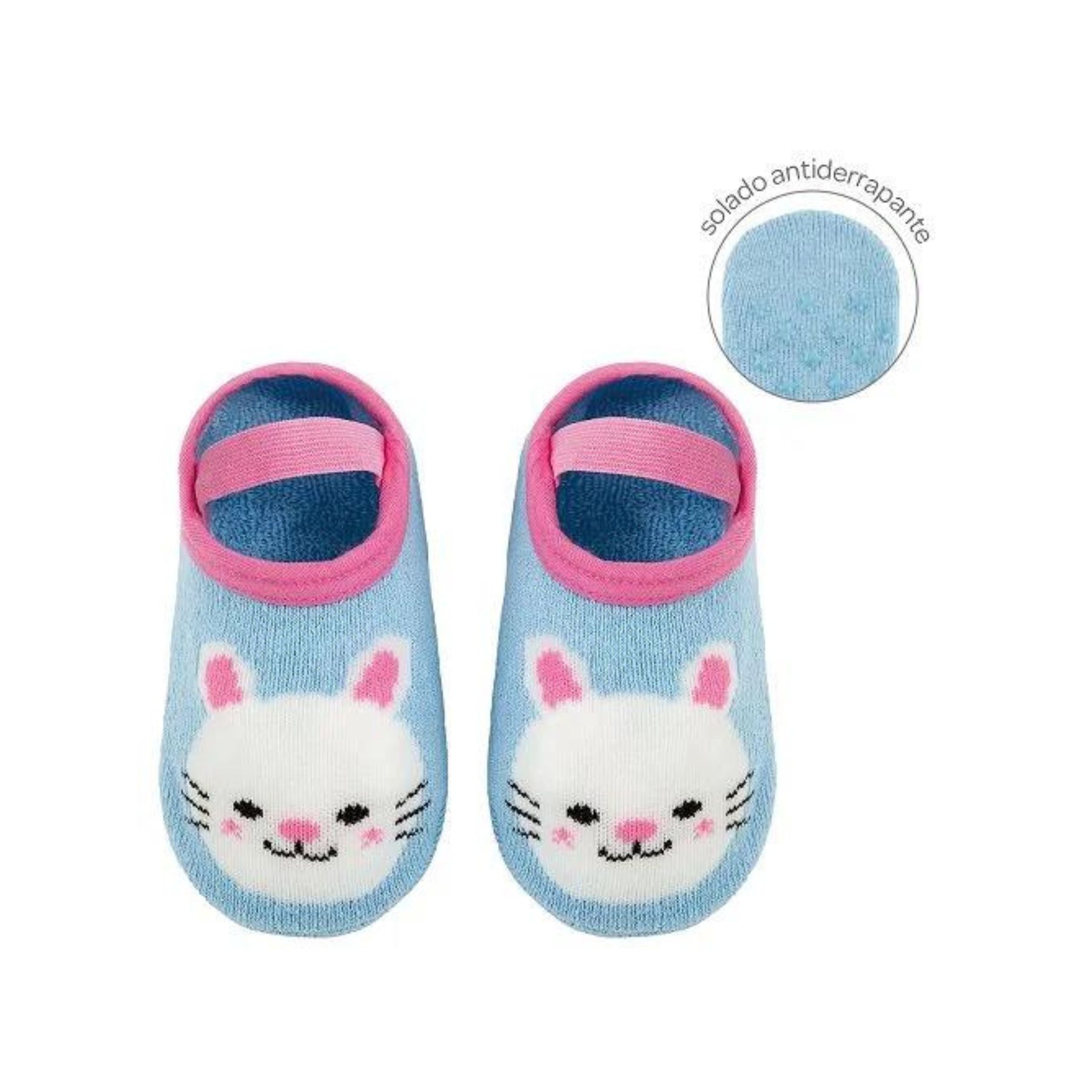 Meia Sapatilha Antiderrapante Buba 0-12m Azul Coelho 14530