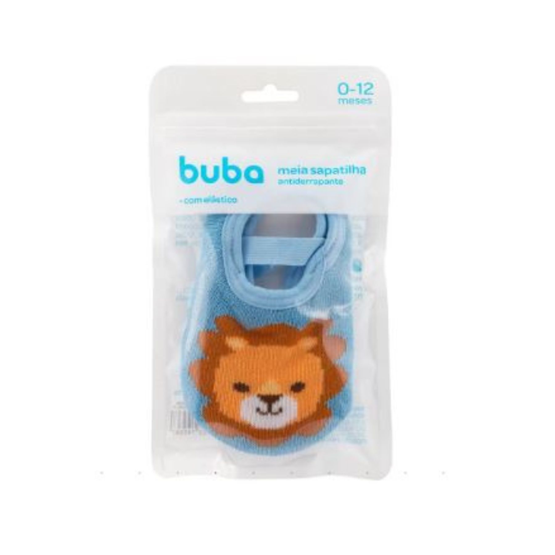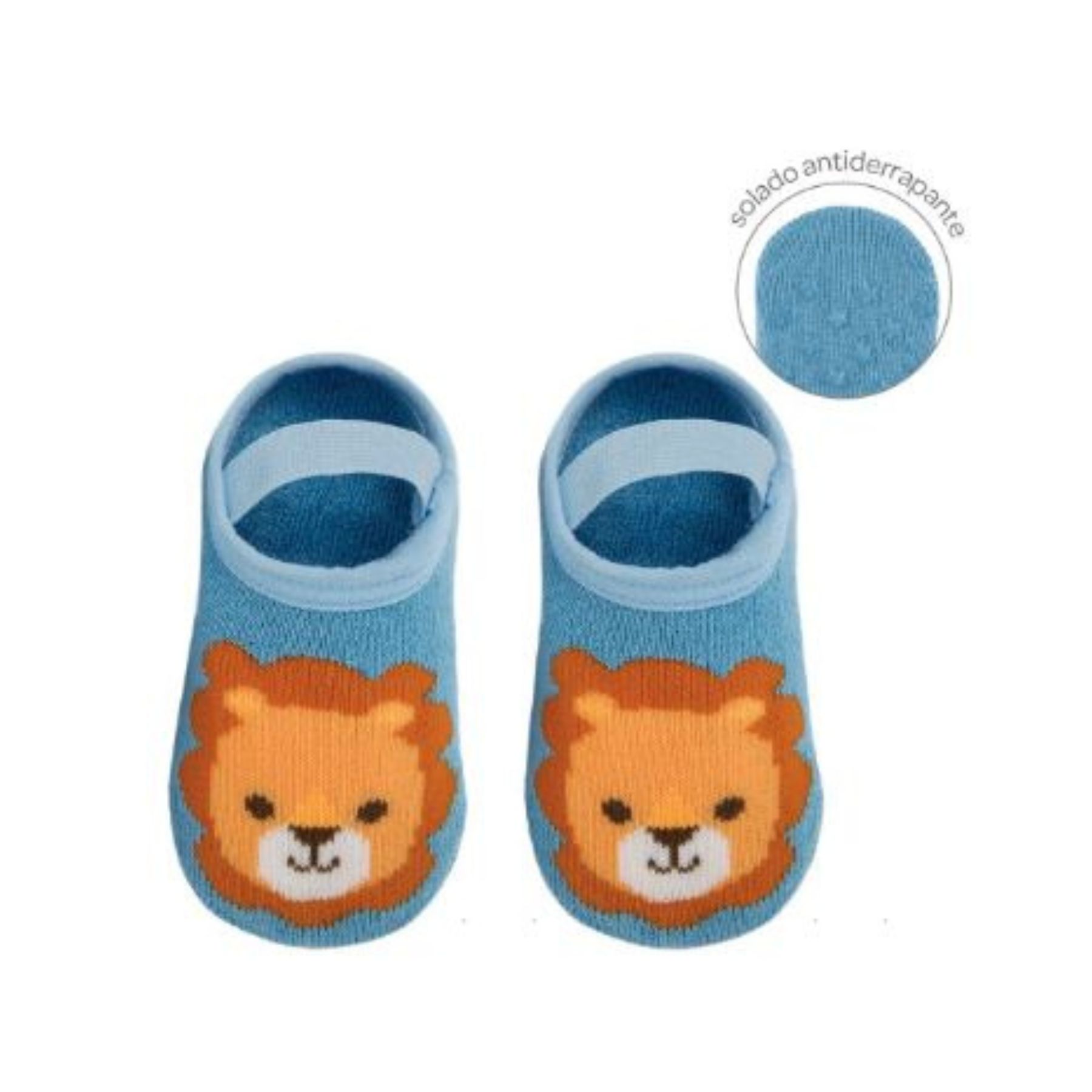 Meia Sapatilha Antiderrapante C/Elastico Buba 0-12m Azul Leão 14536