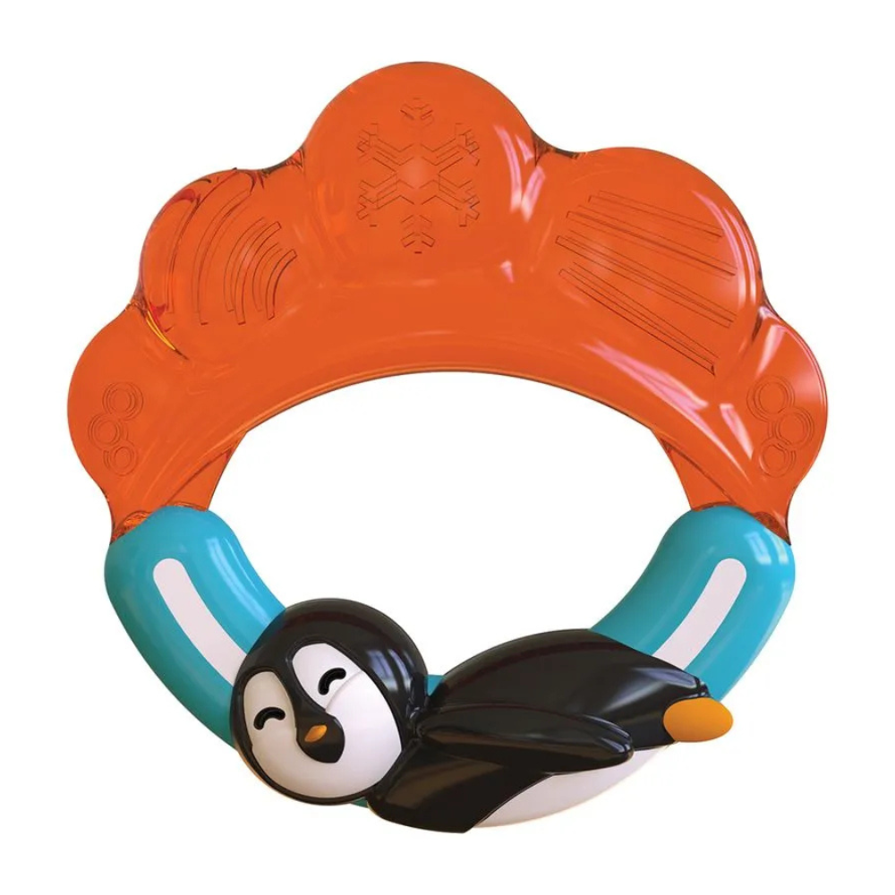 Mordedor com Água Lolly Kinddy, essencial para a dentição de bebês a partir de 4 meses. Com o design divertido de Pinguim, ele pode ser resfriado para proporcionar um alívio gelado imediato para as gengivas doloridas. Feito com material resistente e Livre de BPA, é a solução segura e eficaz para o desconforto dos primeiros dentinhos.