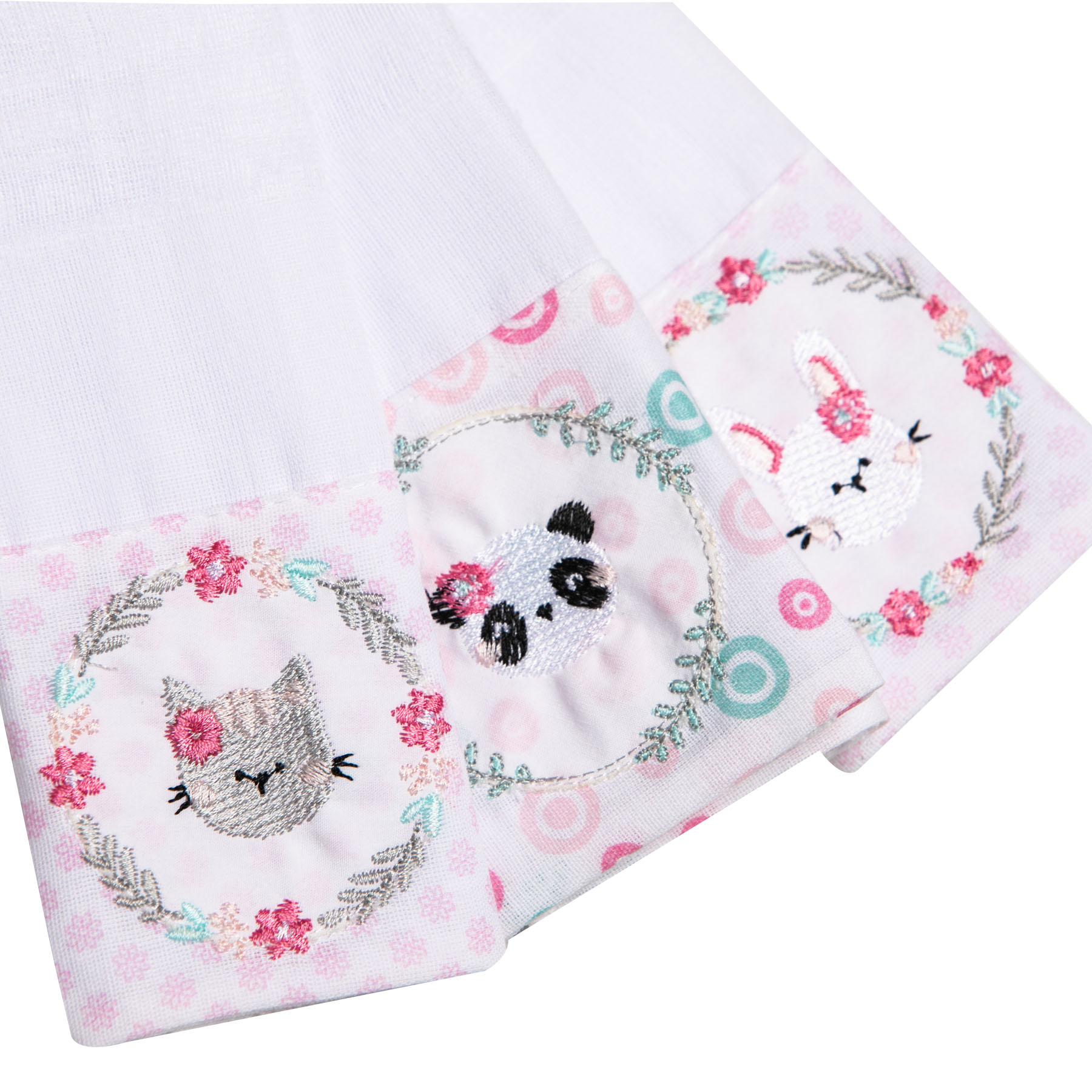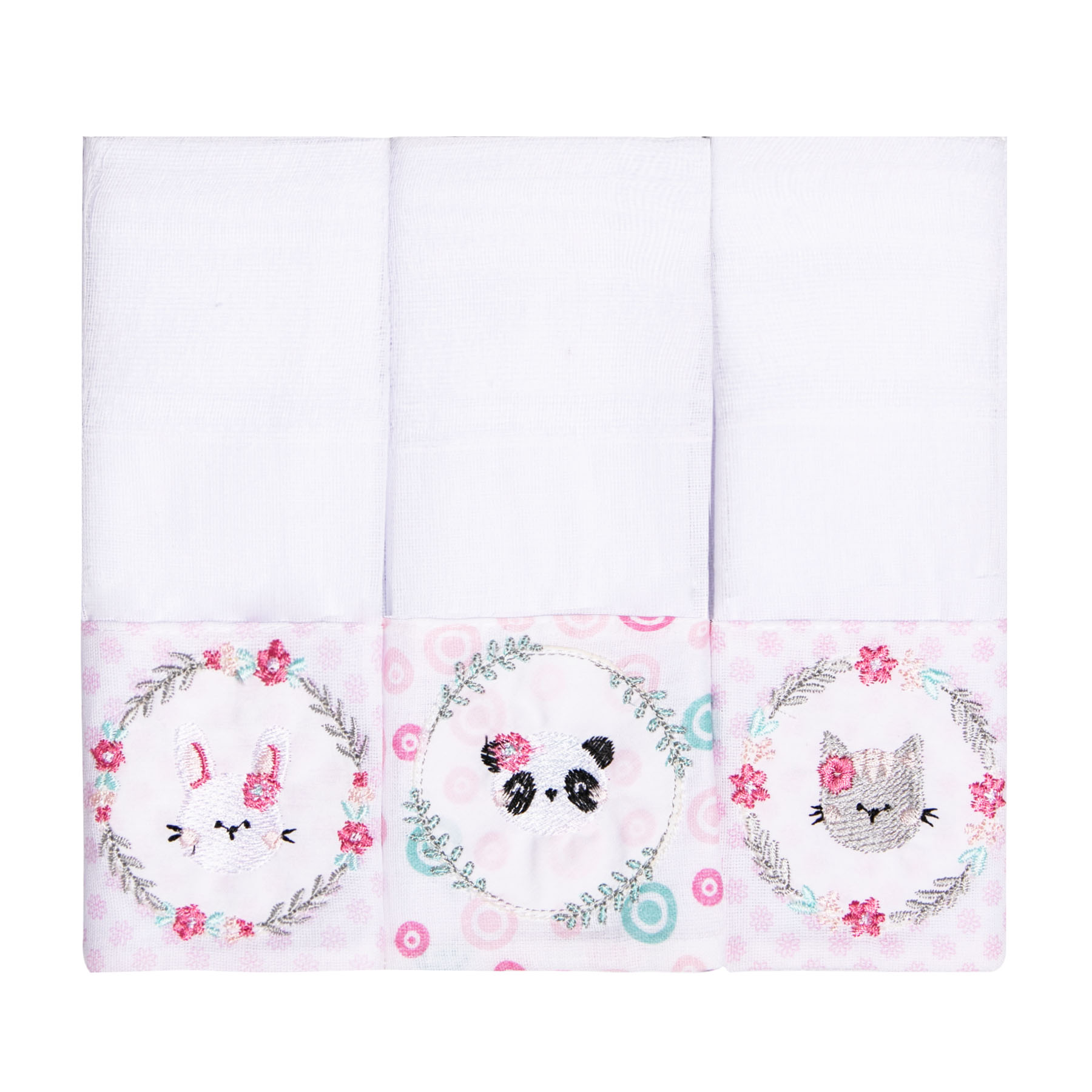 O Pano de Boca Karinho Bordado Feminino Rosa/Amiguinhas é um item indispensável no enxoval da sua bebê, combinando praticidade e maciez para os cuidados diários. Este kit, em particular, oferece um design delicado e encantador.