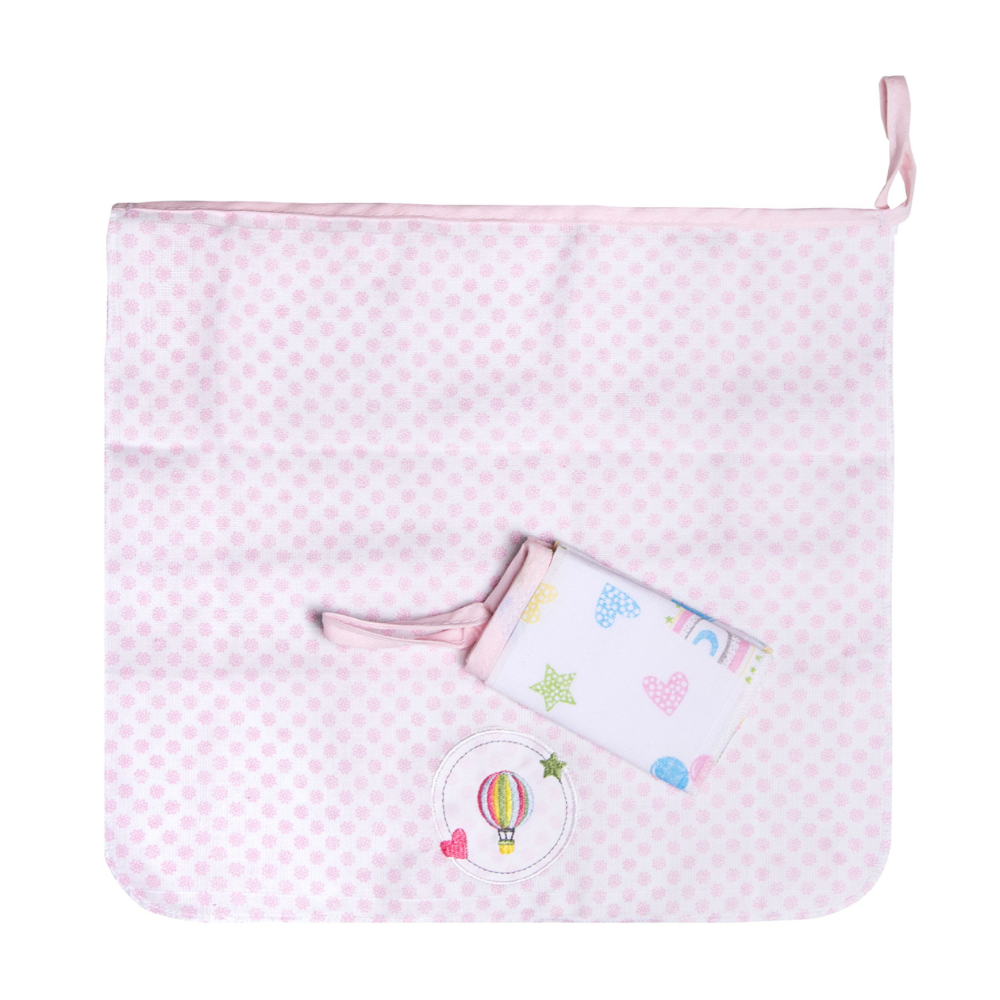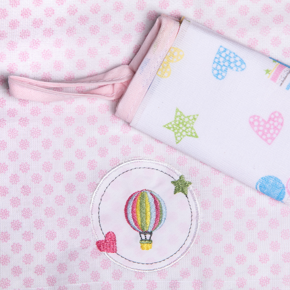 Cada pano vem com um delicado bordado de um solzinho charmoso em tons de rosa e outras cores vibrantes, adicionando um toque de brilho e doçura. Este kit une funcionalidade, praticidade e um visual encantador, sendo indispensável no enxoval da sua princesa.